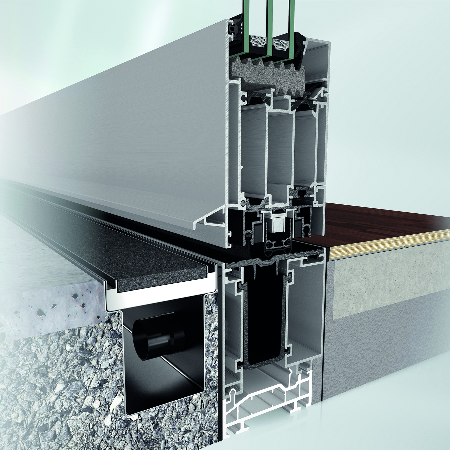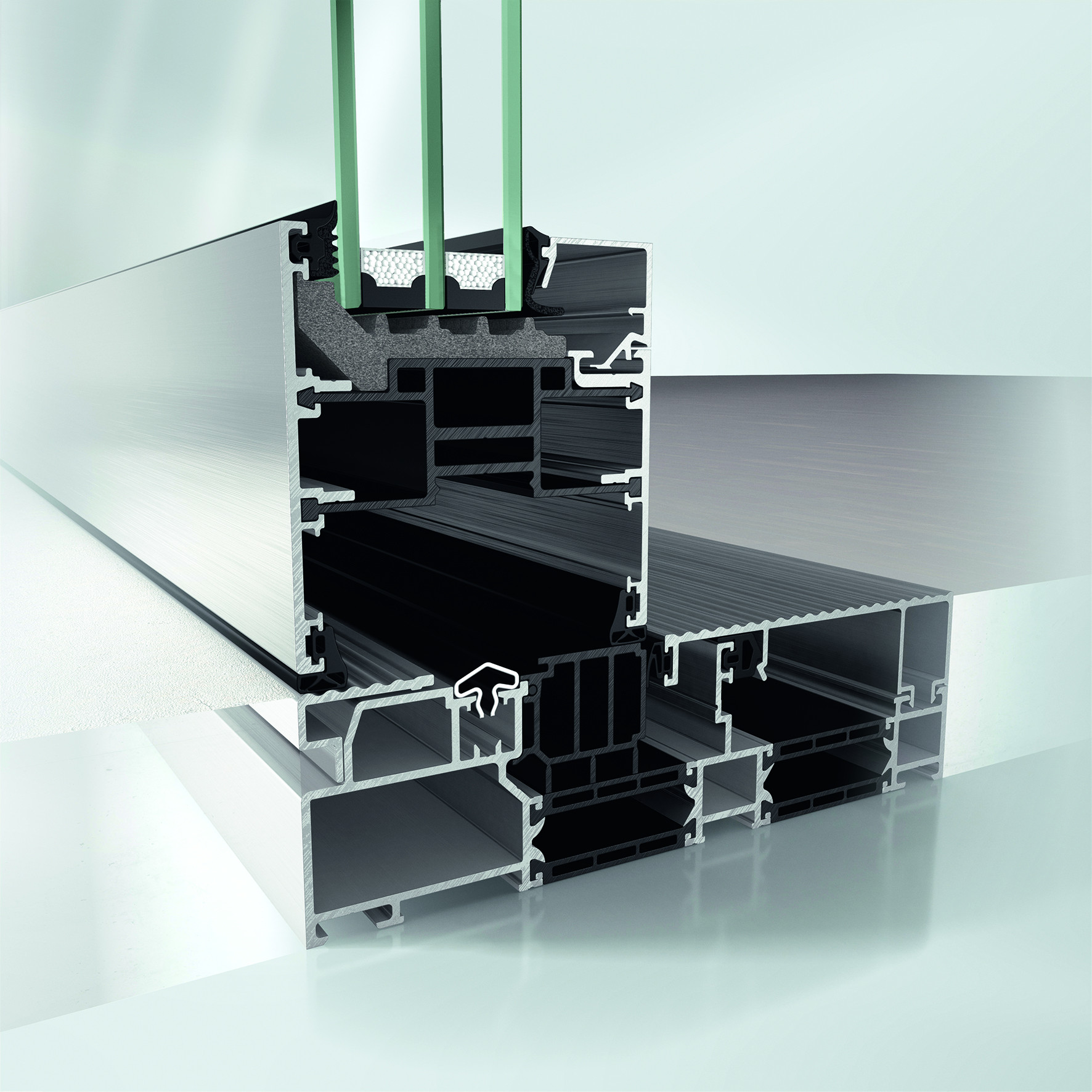 I posuvné systémy jsou vybaveny zapuštěnými prahy