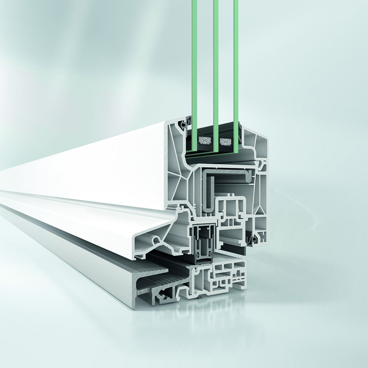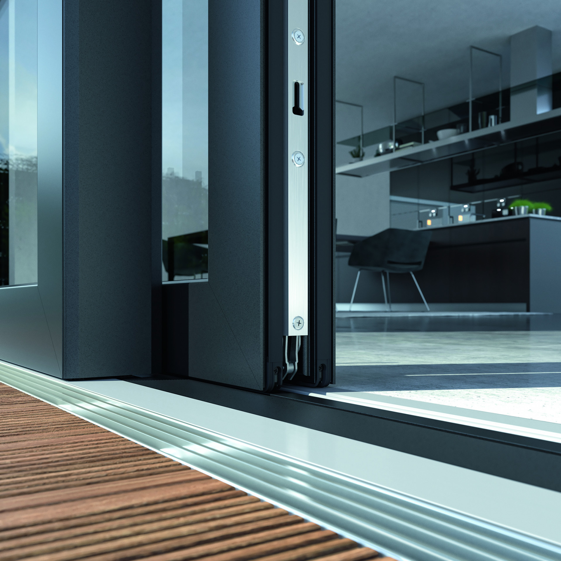 Kromě oken a dveří musejí i posuvné systémy splňovat určité požadavky, aby je mohli snadno používat všichni obyvatelé bez ohledu na to, zda mají problémy s pohyblivostí či nikoli. Zapuštěné prahy jsou proto i zde nezbytné. Hliníkové posuvné systémy se zdvihem Schüco ASE 60 (stavební hloubka 60 mm) a ASE 80.HI (vysoká izolační schopnost, stavební hloubka 80 mm) a dále i plastový posuvný systém se zdvihem Schüco LivIngSlide PVC-U tyto požadavky splňují. Zejména bezbariérový zapuštěný práh pak poskytuje pohodlný rovný přechod mezi vnitřním a vnějším prostorem. S bezbariérovým prahem u hliníkových a plastových posuvných systémů se zdvihem lze snadno kombinovat další standardní požadavky, jako je účinná tepelná izolace a odolnost proti vloupání na úrovni RC 2.