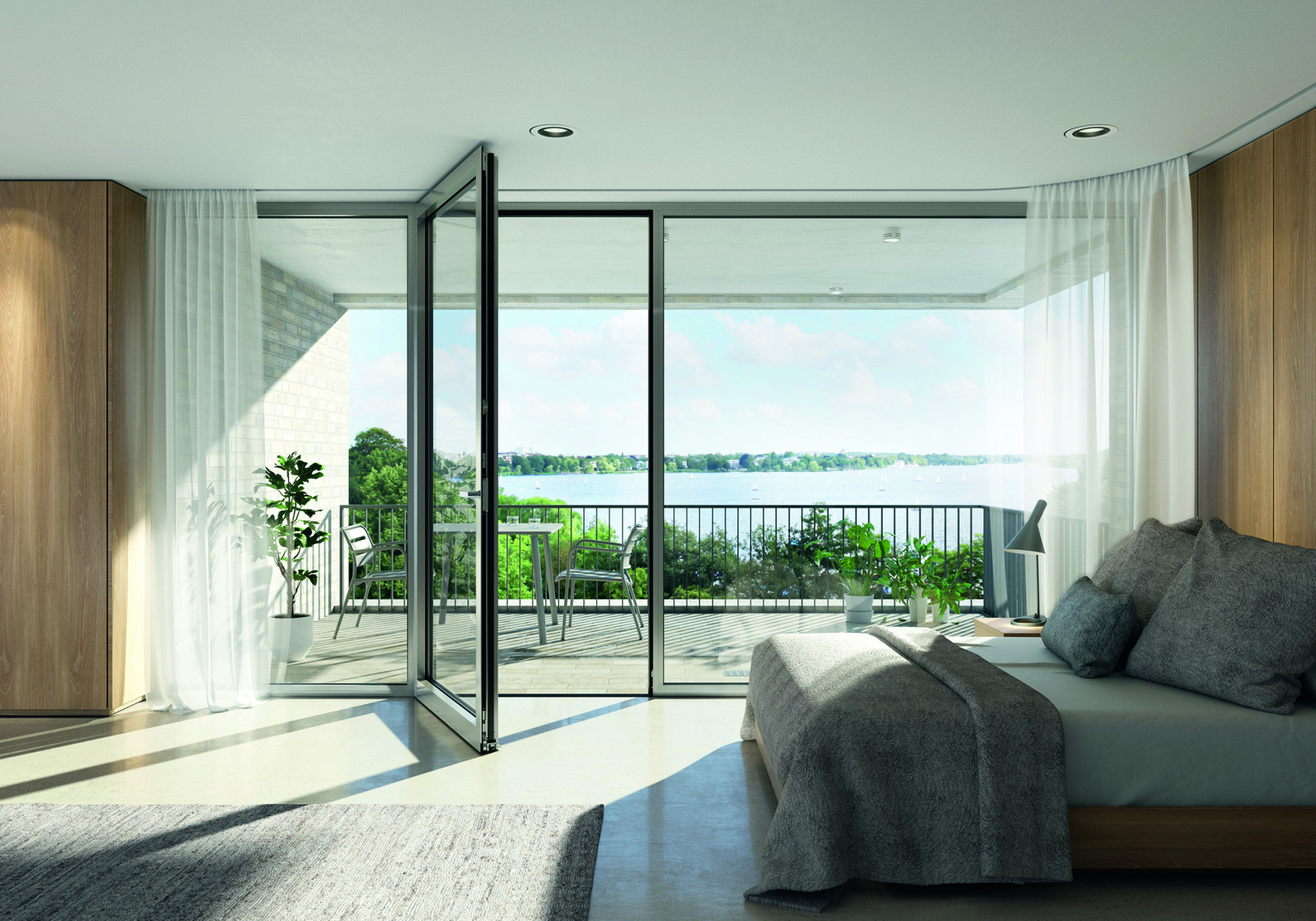 Přístup na balkon nebo terasu může snadno znamenat nebezpečí zakopnutí a pro vozíčkáře dokonce opravdovou překážku. Bezbariérové balkonové a terasové dveře systému Schüco AWS (Aluminium Window System) byly vyvinuty tak, aby splňovaly všechny požadavky na pohodlí a design. Mohou být vybaveny zapuštěným prahem, který umožňuje přechod mezi vnitřním a venkovním prostorem bez rizika zakopnutí. Těsnění prahu se zpožděným hydraulickým spouštěním zajišťuje snadné zavírání a kování Schüco v rámu křídla ulehčuje ruční ovládání. Následující systémy lze navrhnout se zapuštěnými prahy: konstrukce hliníkových oken a balkonových dveří Schüco AWS 70.HI, AWS 75.SI+ a AWS 90 SI+ (stavební hloubka 70, 75 a 90 mm) a plastové balkonové dveře z produktové řady Schüco LivIng a Schüco LivIng Alu Inside.