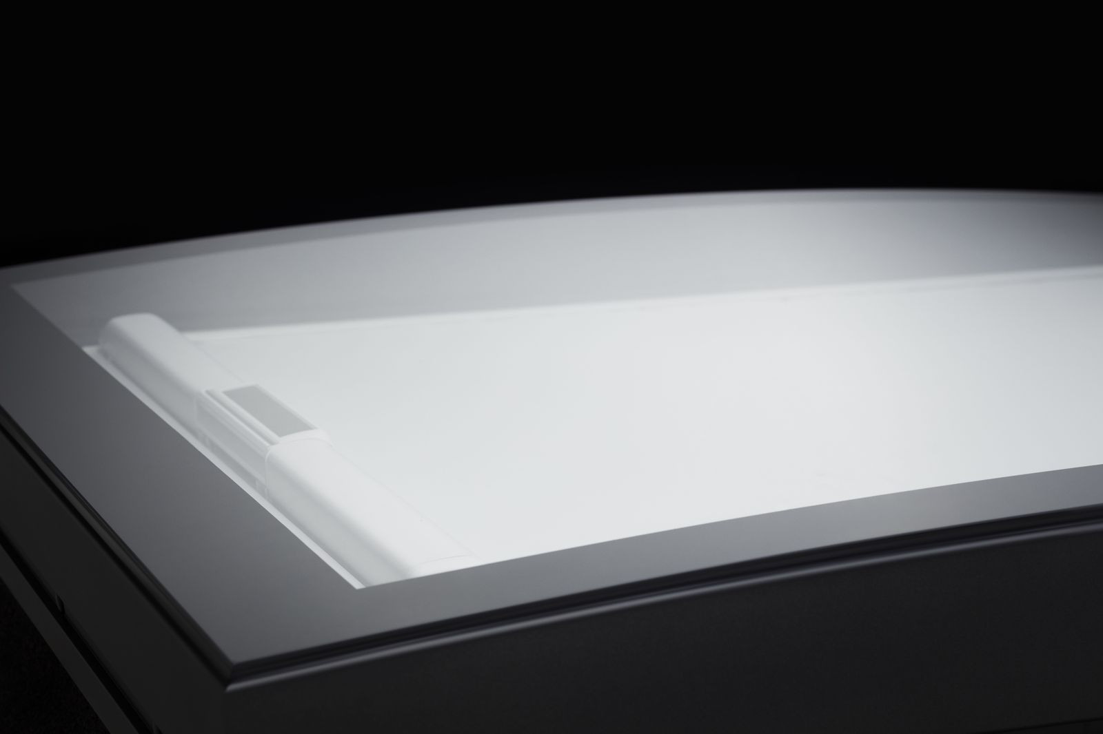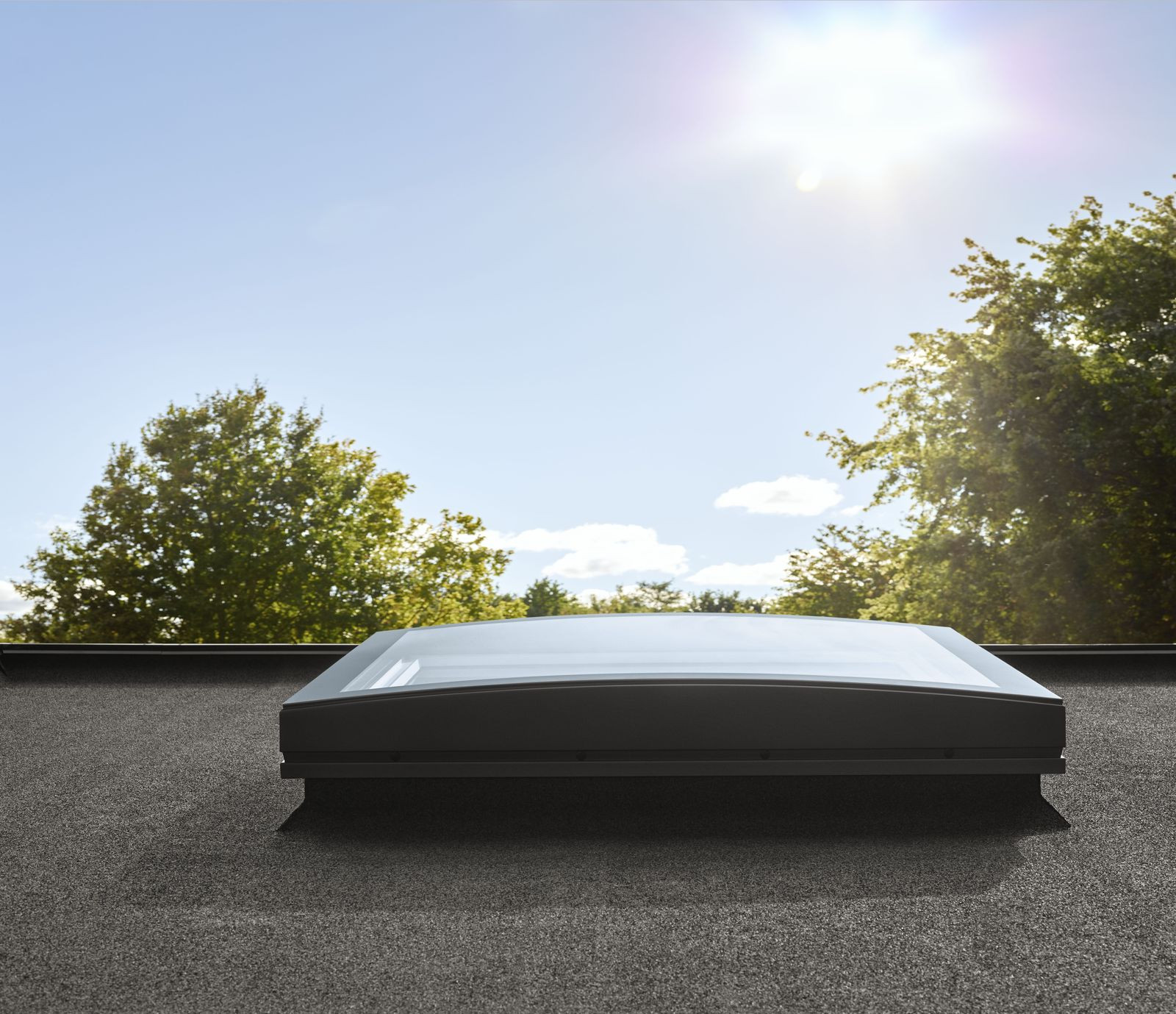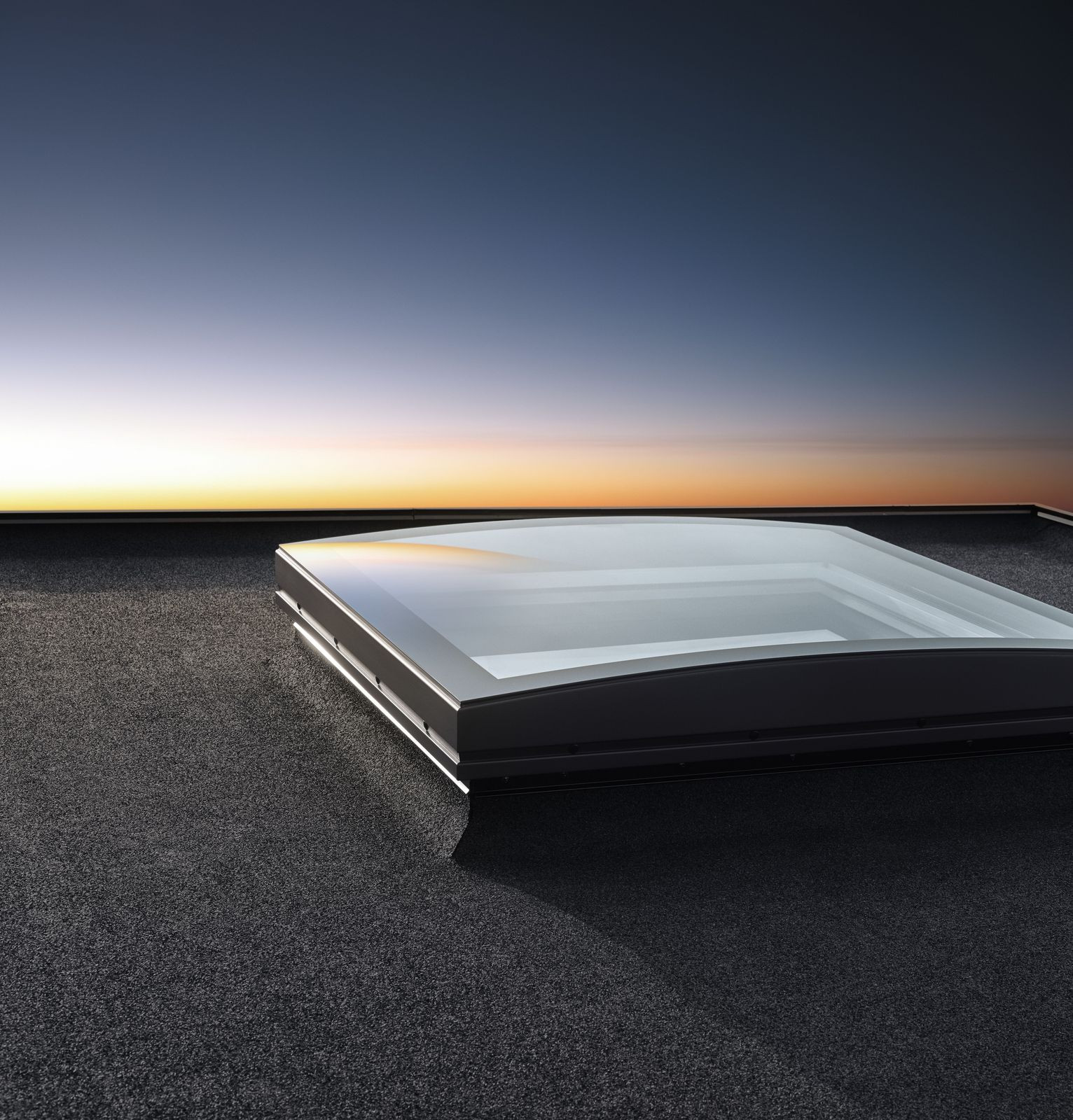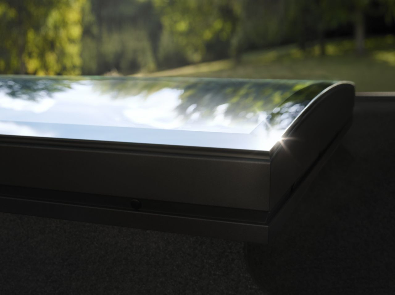 Novinka v podobě minimalistického světlíku se zaobleným zasklením představuje skvělé řešení pro všechny, kteří plánují prosvětlení prostor pod plochou střechou a očekávají od střešního okna více než štít proti nepříznivému počasí. Tento inovativní design zajišťuje dokonalý odvod deště i na střechách se sklonem 0 stupňů (od 0 do 15 stupňů). Zároveň nabízí intenzivní zdroj denního světla a čerstvého vzduchu i čistý výhled na oblohu.
