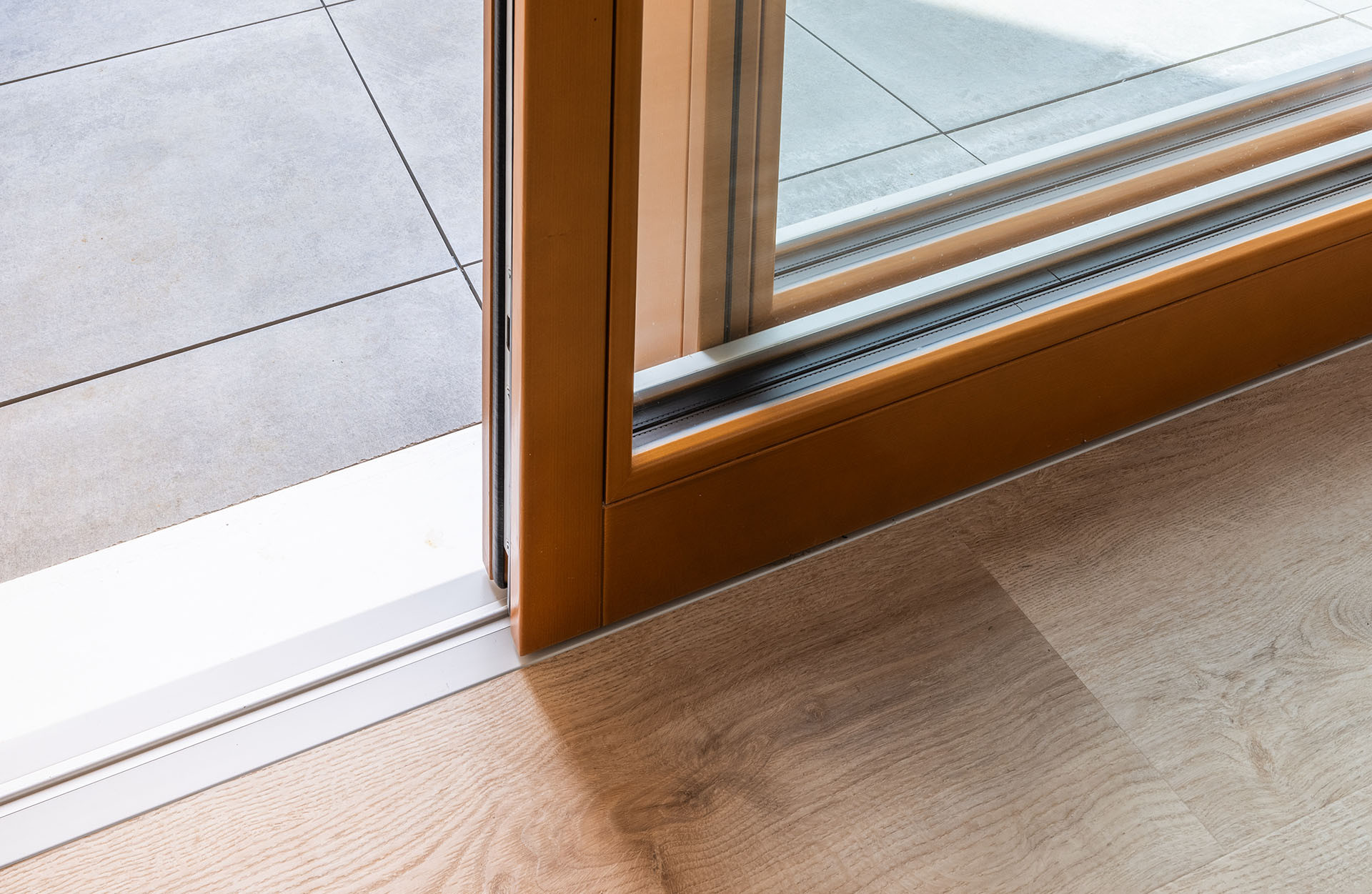 Požadované maximální prosvětlení prostoru podtrhují posuvné systémy doplněné o nulový práh, kdy nad úroveň podlahy vystupuje jen drobná lišta. Konstrukce zabudovaná pod ní je doplněna o soustavu kotvicích a izolačních prvků, aby byla zajištěna dlouhodobá funkčnost prvku bez rizika prochládání jeho okolí.