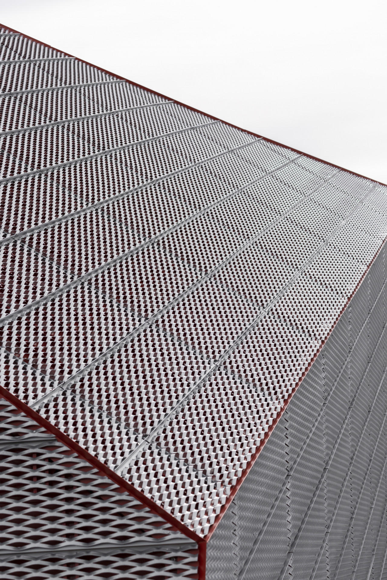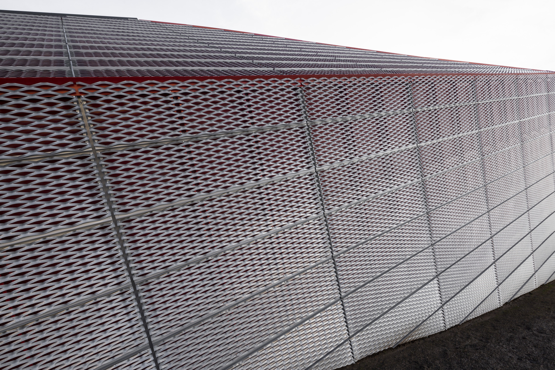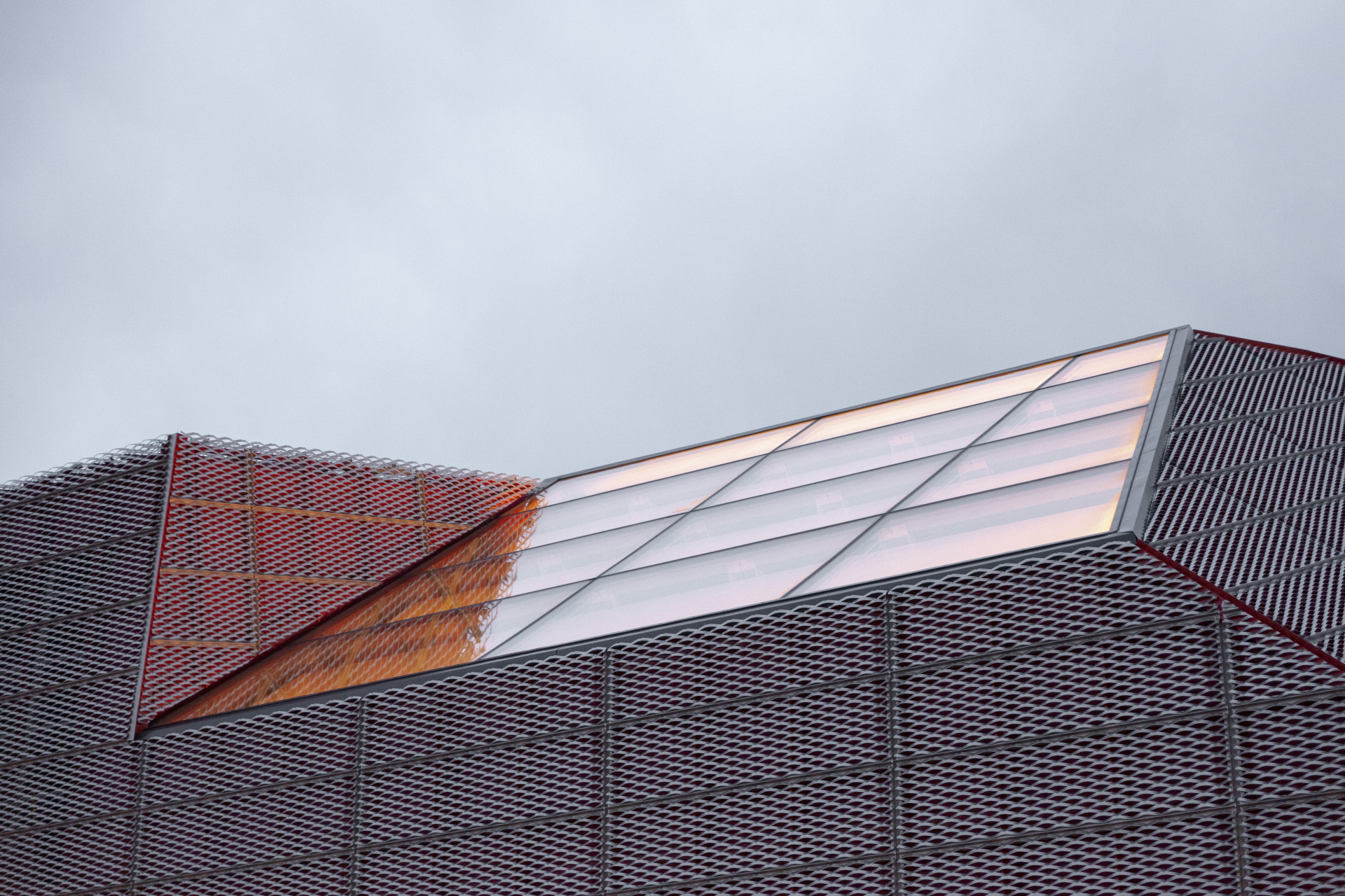 Po konstrukční stránce tvoří modlitebnu trojice vzájemně do sebe zapřených betonových desek. Fasádu modlitebny pak pokrývá „síť“ z tahokovu, která spolu s červenou folií pod ní zajišťuje specifický barevný efekt. Fasáda modlitebny totiž v průběhu dne mění svou barevnost v závislosti na intenzitě a směru slunečního světla. Obdobně se plášť modlitebny proměňuje s různou vzdáleností pozorovatele od budovy.