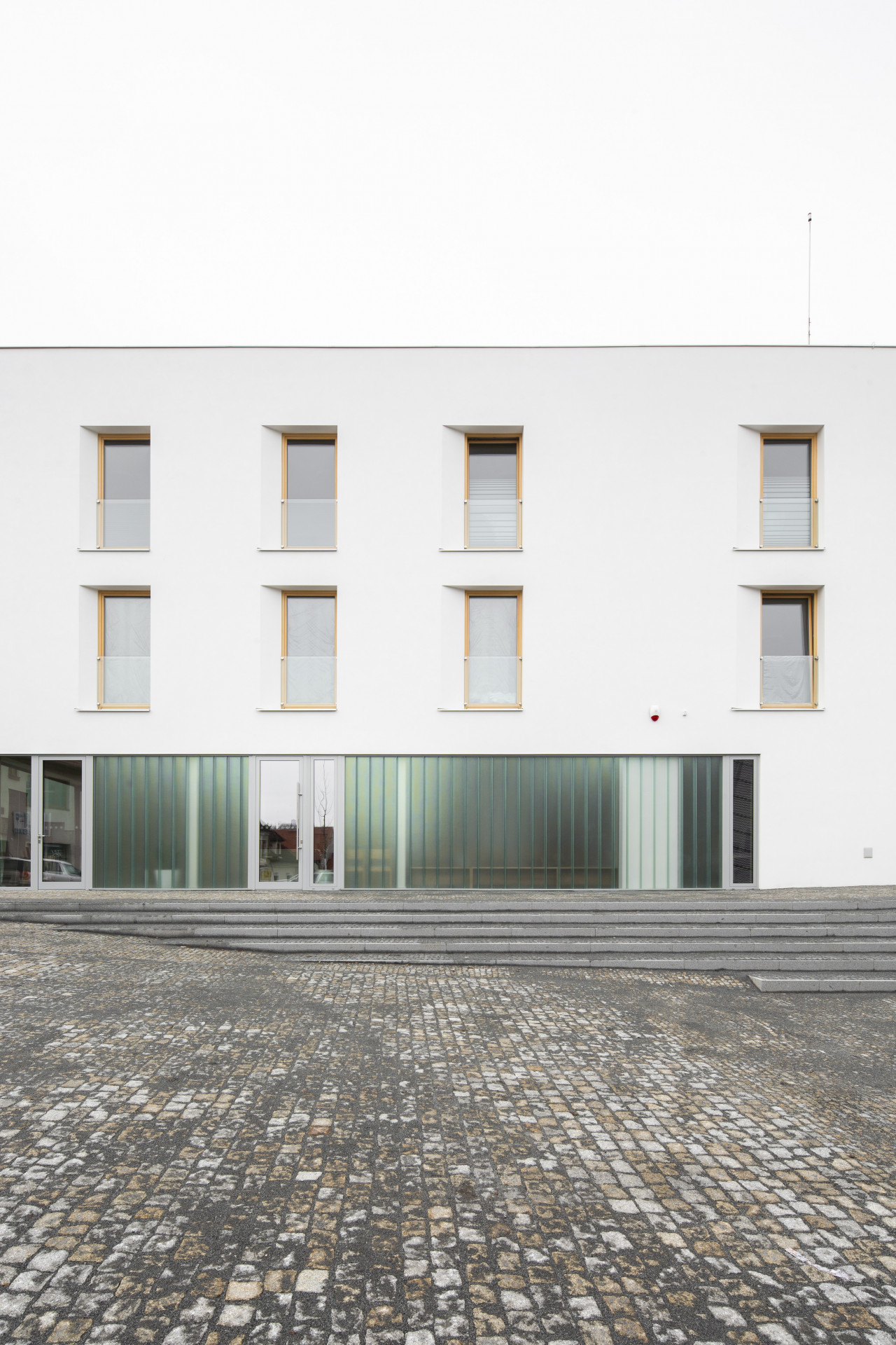 Společenské centrum, které vzniklo v těsné blízkosti historického centra středočeských Sedlčan podle návrhu českobudějovického ateliéru A8000, tvoří soubor dvou staveb – bytový dům a modlitebna.
