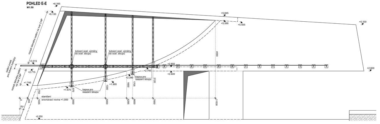 „Asi největším benefitem byla tvorba dílčích řezů návazností šikmých stěn a stropů pro vykreslení správného tvaru výztuže. Dále jsme s využitím 3D modelu rozkreslili geometrii ocelových příhrad pro konstrukci světlíku a šikmých sloupů v oknech,“ doplňuje Petr Müller.