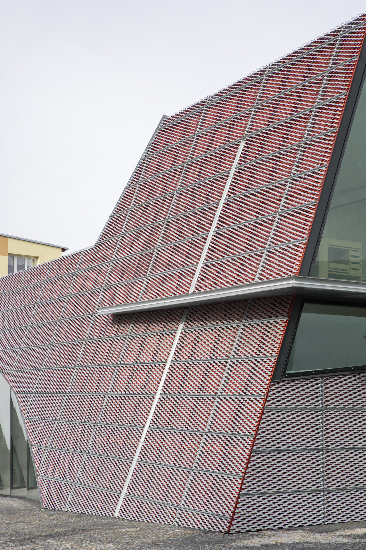 „Pro bytový dům a modlitebnu jsme použili dva rozdílné přístupy, kde tradičněji pojatý bytový dům je svým výrazem a kompozicí podřízen objektu modlitebny a vytváří pro ni kvalitní prostor. Pojednán je jako jednoduchá až strohá forma, která se k výraznému tvaru modlitebny odkazuje sešikmenou rovinou v zadním partu,“ vysvětlují princip návrhu architekti.