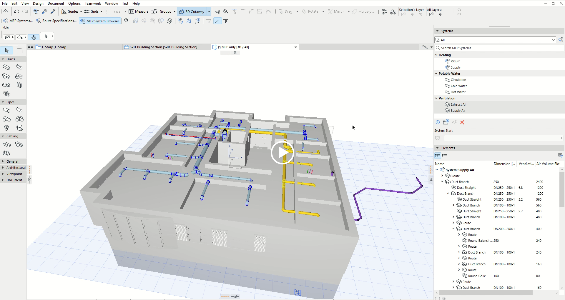 MEP Designer pokrývá všechny základní technické rozvody plus kabelové žlaby. Stojí na osvědčeném enginu Archicadu, což eliminuje ztráty času při učení se většiny BIM programů. Umí parametricky modelovat, automaticky a poloautomaticky generovat půdorysy, řezy, pohledy a výkazy a provádět výpočty. Je navržen jako globálně použitelné prostředí (parametrické modelování), které je otevřeno pro lokální úpravy (2D symboly, čáry, knihovní prvky) a napojení na lokální výpočtové aplikace.