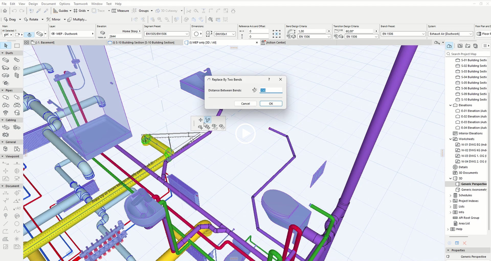 V MEP Designer Studio se dá snadno modelovat. Například výměna jednoho kolene za dvě s definovanou vzdáleností mezi nimi je nenáročná. Funkce odsazeného segmentu funguje i pro větvení. Pomocí funkce Upravit lze vytvořit připojení bočních větví k větvi hlavní. U samostatných prvků je úprava připojení jednoduchá, s přímým přístupem k typu prvku, průměru, typu připojení a nastavení systému TZB. Prvky lze snadno přidávat přímo do trasy. Úpravy tras často ponechávají zbytečné uzly, které mohou vadit v případě, že je přímo v nich vyžadováno směrové spojení. Takové uzly lze snadno odstranit.