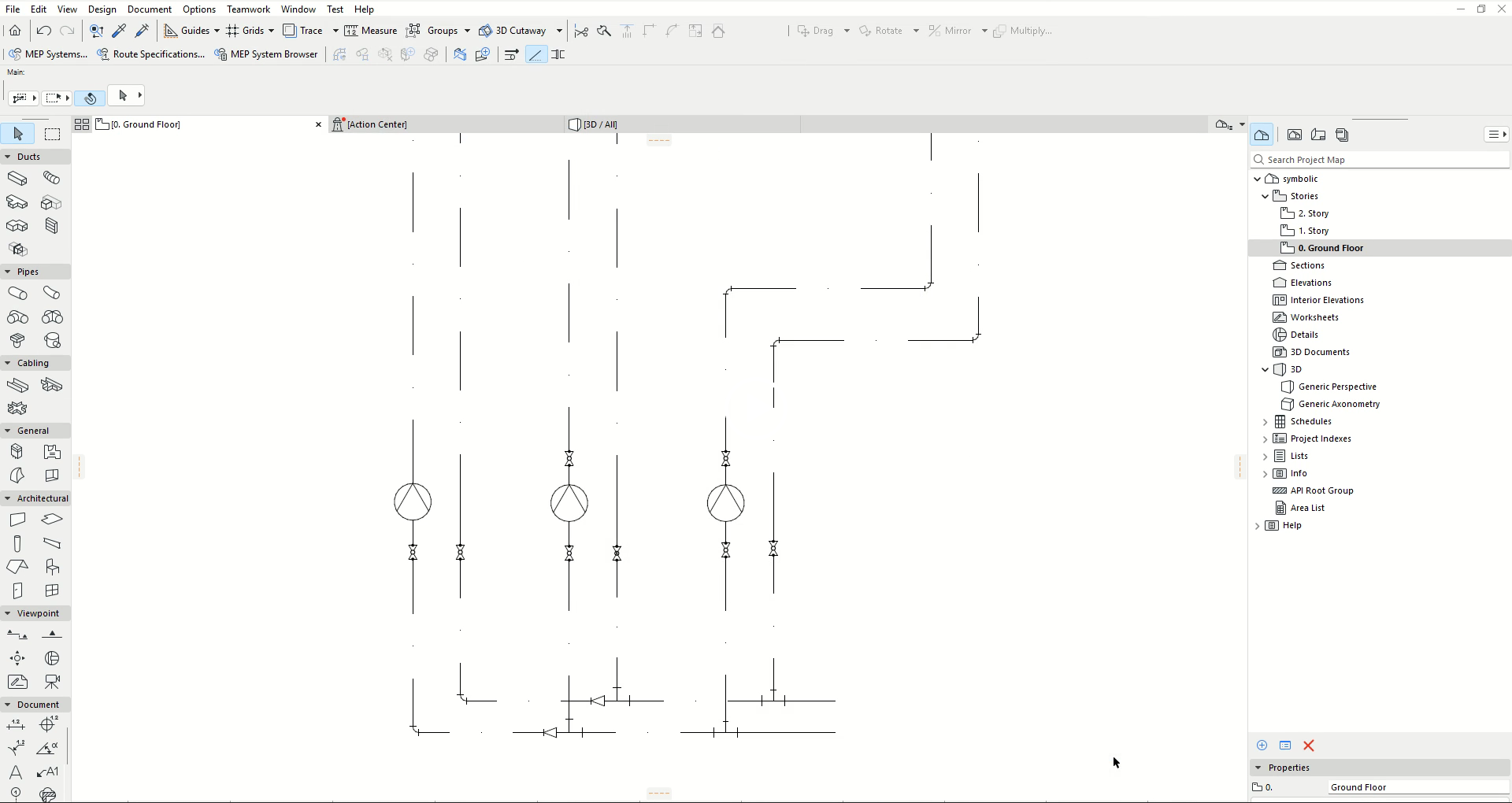 Schopnost symbolického zobrazení TZB rozvodů ve výkresech odpovídající lokálním požadavkům a normám je zásadním požadavkem. Ve "Volbách zobrazení modelu" lze segmenty potrubí nastavit tak, aby zobrazovaly pouze osy, zatímco všechny ostatní TZB prvky používají symbolické znázornění.