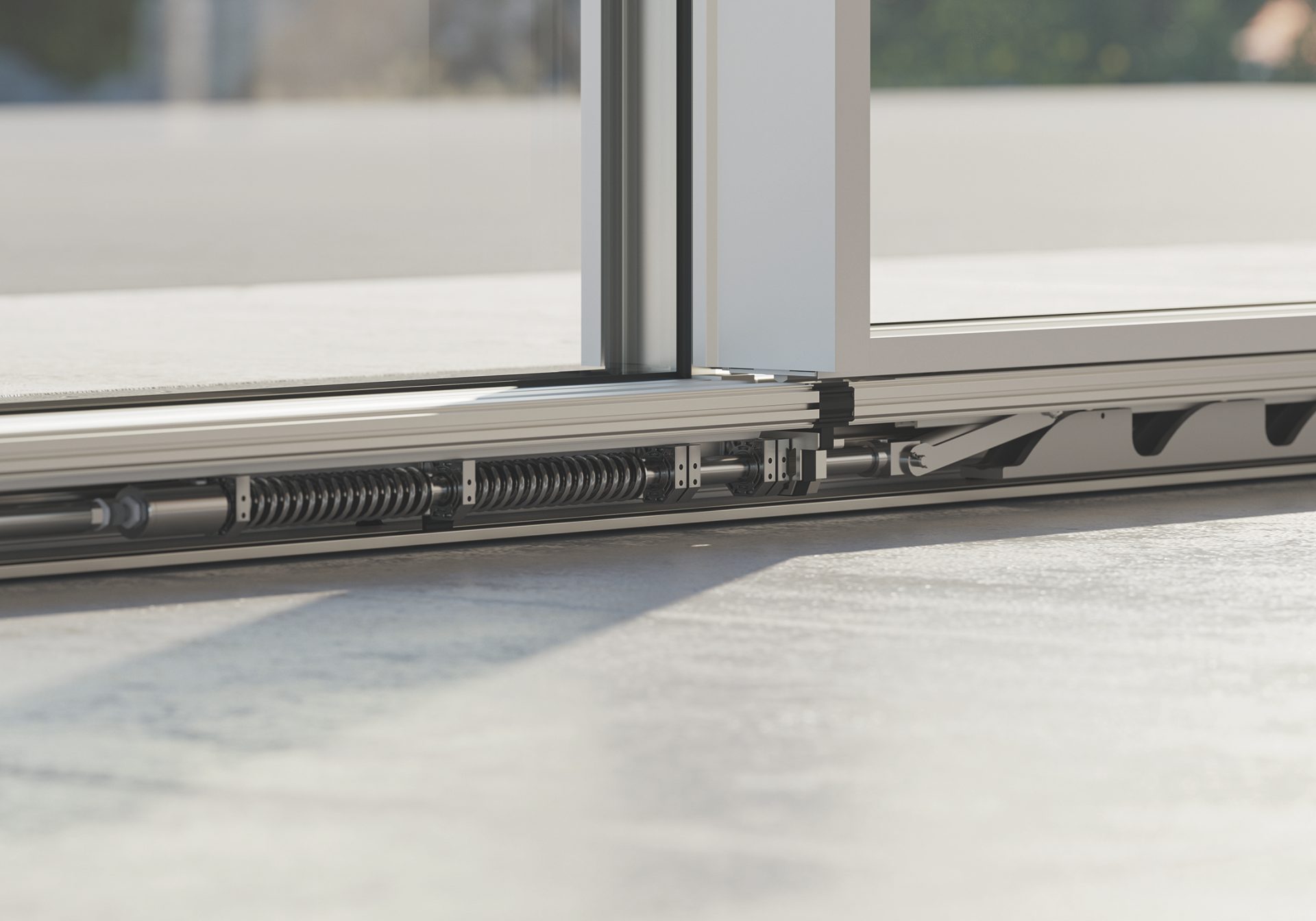 Nová technologie zdvižně-posuvné konstrukce poprvé umožnila zkombinovat skrytý rám se zapuštěným prahem (Performance Line), poprvé se tedy transparentnost Panorama Design a bezbariérový přechod vzájemně nevylučují.Mechatronicky ovládaný zapuštěný práh se při otevření posuvného systému Schüco AS PD 75.HI vysune z vnějšího rámu integrovaného v podlaze a vytvoří pohodlný přechod bez nebezpečí zakopnutí.