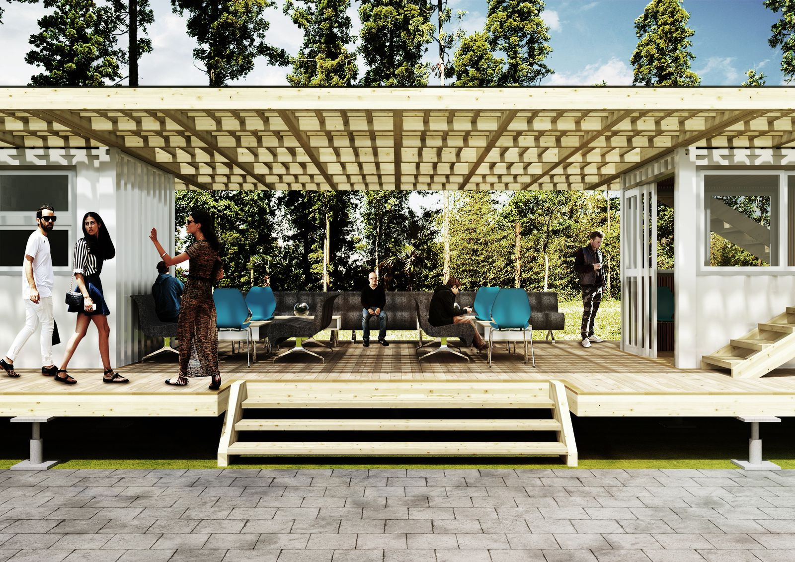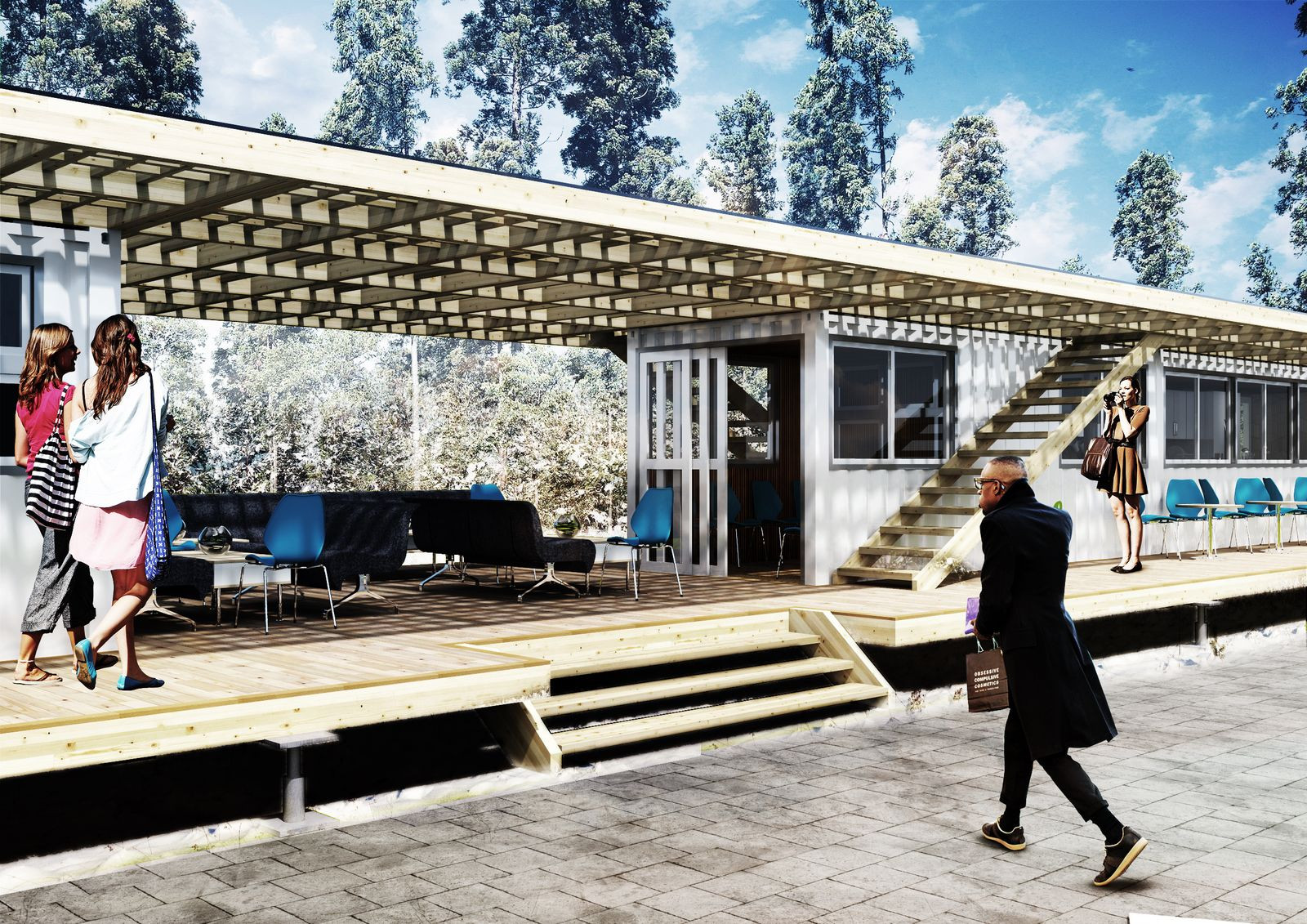 Projekt je vybudován tvořivým, udržitelným a levným přístupem za použití recyklovaných přepravních kontejnerů (kontejner 20 stop). Kontejnery tvoří nosnou konstrukci s lehkým designem. Další materiály jako dřevo a sklo byly použity ke zlepšení energetické náročnosti a snížení uhlíkové stopy restaurace.
