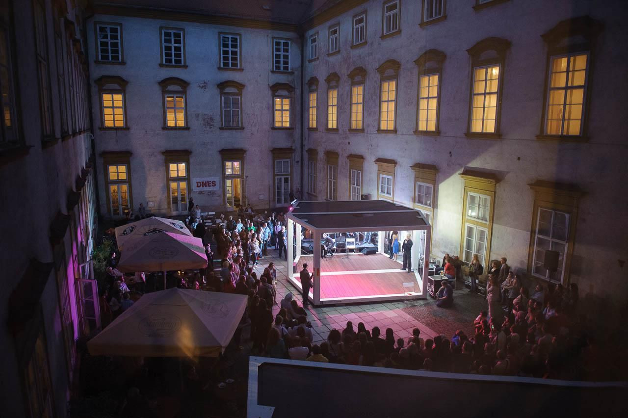 První místo, kde se otevřené prototypy lichoběžníkových CITY modulů objevily, bylo nádvoří Místodržitelského paláce Moravské galerie v Brně. Tam širokou veřejnost CITY moduly zaujaly v provedení bez stěn a nabídly návštěvníkům galerie prostor k odpočinku na místě, které před jejich instalací nemělo plnohodnotné využití. Ředitel Moravské galerie Jan Press v rozhovoru pro zpravodajský kulturní server Artalk.cz přiblížil důvody instalace CITY modulů na nádvoří Místodržitelského paláce takto: „Chtěli bychom prostor nádvoří pojednat buňkami, které se dají variabilně skládat, a tím vytvářet určitý komornější druh prostředí pro realizaci různých doprovodných programů. Současně by to však měl být prostor, kam budou lidi přicházet jen pro to, aby si tam mohli sednout, přečíst noviny, nebo zapnout počítač k internetu, aniž by za to museli platit.“ A CITY moduly splnily nejen tento účel, neboť právě jejich unikátní tvar se do prostředí nádvoří Místodržitelského paláce v Brně skvěle hodil.