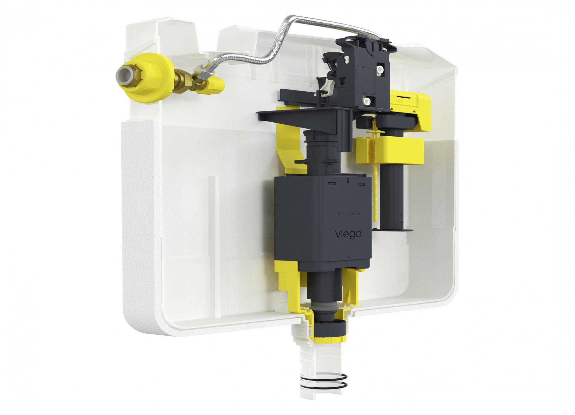 Podomítkové splachovací nádržky Viega 2H, 2C a 2S s konstrukční výškou 1130 mm jsou nyní nově standardně vybaveny škrticími ventily splachovacího proudu. Ventil omezuje splachovací proud, aniž by došlo ke snížení množství splachovací vody. Nedochází tak k občasnému vystříknutí splachovací vody u keramických WC bez oplachovacího okraje, jak tomu bylo v minulosti. Účinnost ventilu lze nastavit v pěti stupních podle příslušné montážní situace. Již nainstalované splachovací nádržky Viega lze těmito ventily dovybavit i dodatečně.