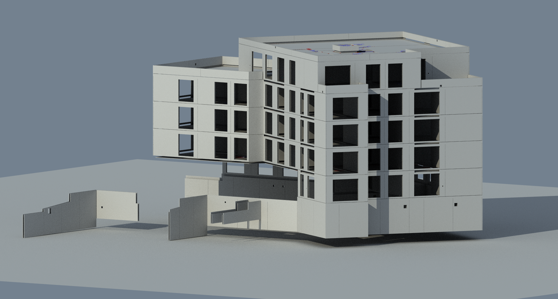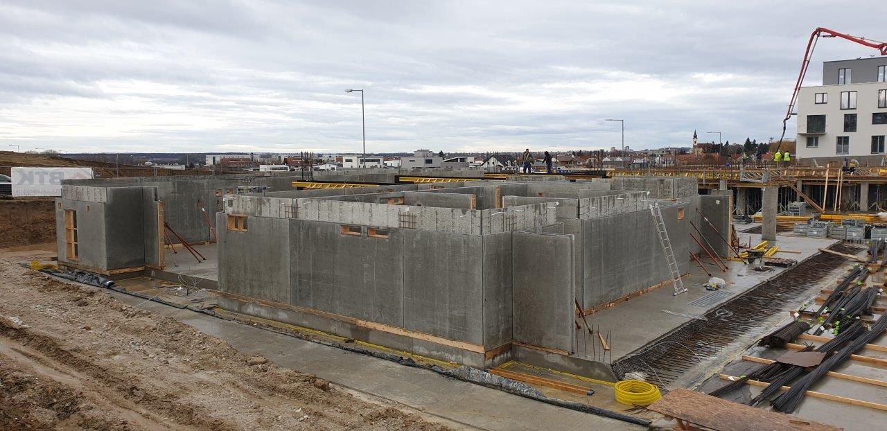 S ohledem na rychlost a přesnost výstavby zvolil investor cestu prefabrikace. Základ jednotlivých domů tak tvoří filigránové stěny a stropy. Také další prvky jako balkóny a schodiště představují prefabrikované díly. Prefabrikované konstrukce vznikaly pod taktovkou projektantů z Polivka, Hritz Precat Engineering s.r.o v programu Allplan Precast (dříve Allplan Planbar verze 2020-1-2).
