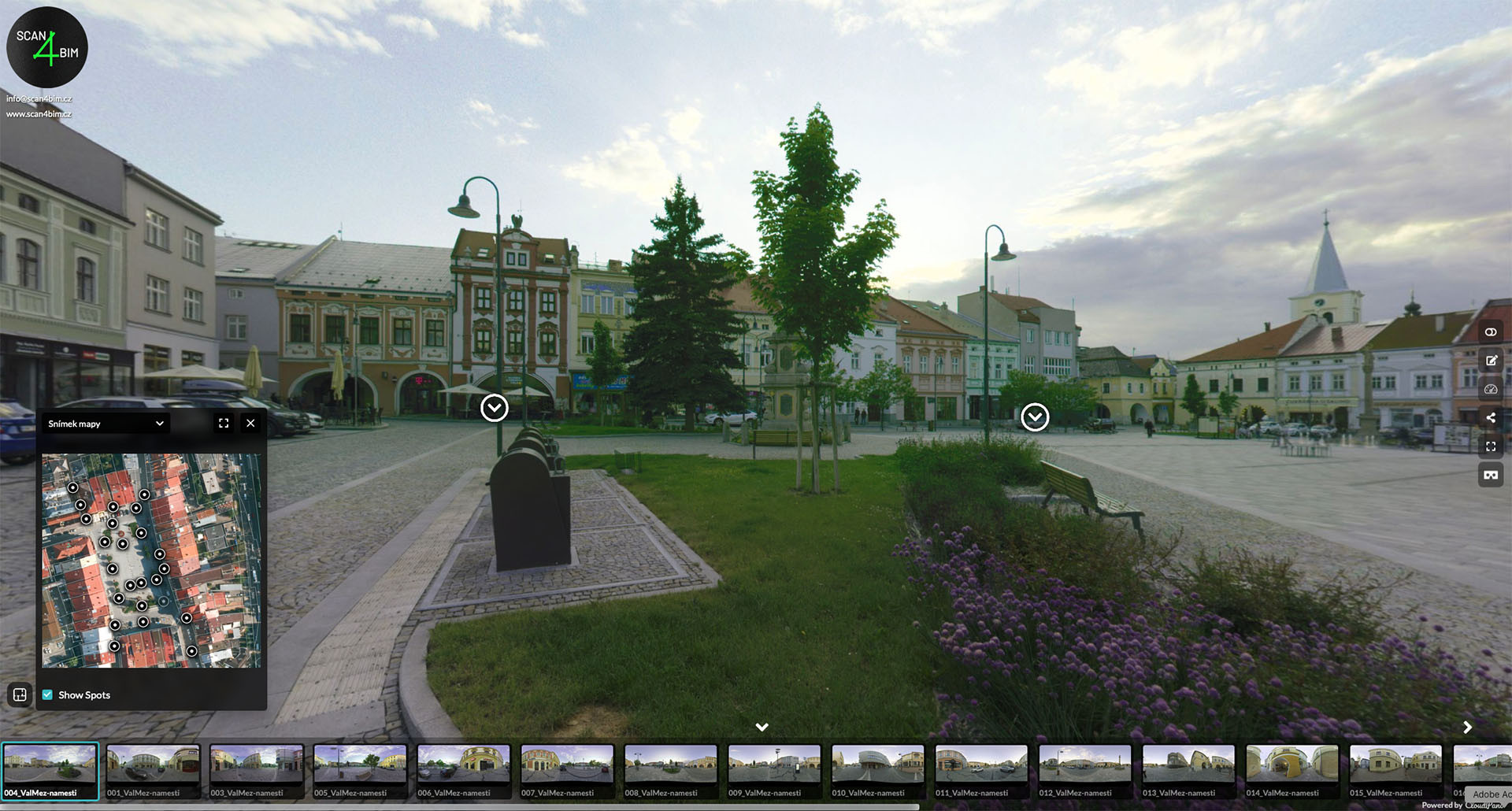 Ukázka virtuální prohlídky náměstí ve Valašském Meziříčí v aplikaci CloudPano.