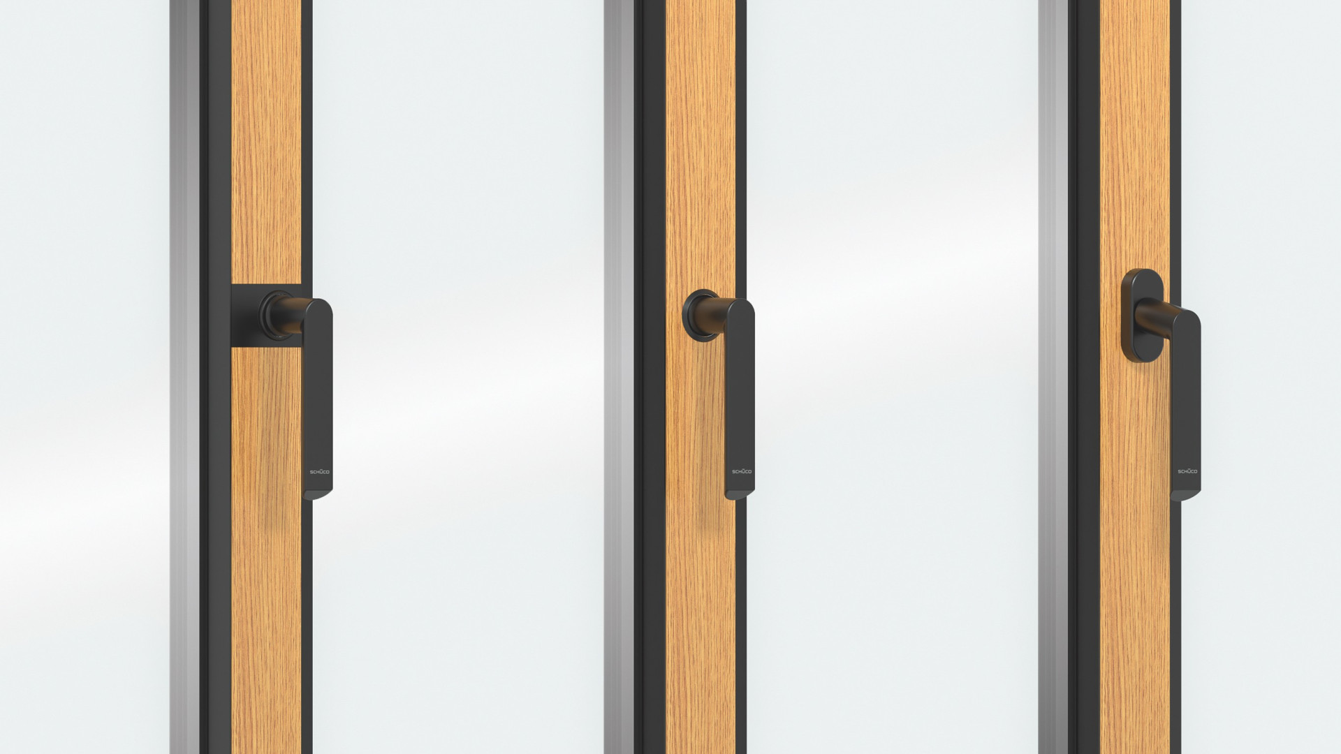 S novinkou Schüco WoodDesign dostal investor možnost vybrat si ze sedmi dřevěných dekorů: Pure, Natural, Walnut, Chocolate, Gris Beige, Savanna a Super White. Po konzultaci s realizační firmou si ale bude moci individuálně zvolit i další dřeviny. Speciálně pro dřevěný povrch Schüco AWS WoodDesign byly vyvinuty i dva nové tvary rozet − klika s pravoúhlou rozetou a klika s kulatou rozetou. Kromě toho je k dispozici i standardní okenní klika s oválnou rozetou, která dosahuje v uzamykatelné variantě odolnosti proti vloupání až RC 3.