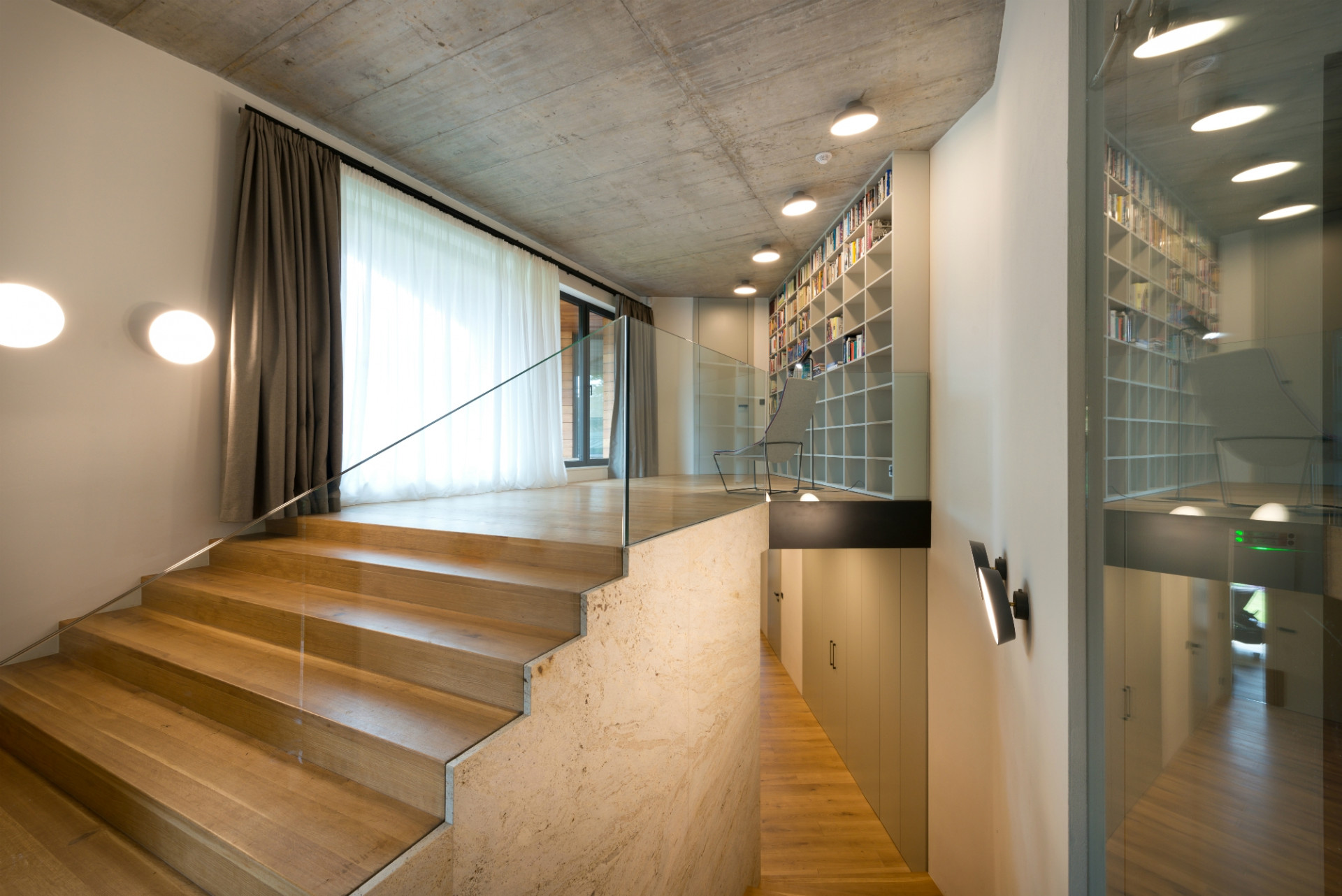 - Hliníkové systémy Schüco použité v projektu: Okna, balkonové dveře: Schüco AWS 75 BS.HI+ s trojsklem, skleněné zábradlí v lištách Schüco, v jednom okně elektricky ovládaná ventilace TIPTRONIC