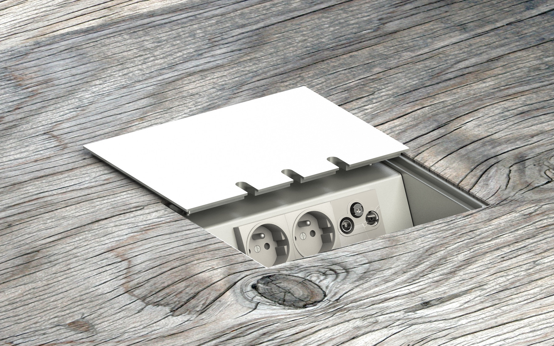 Zásuvkové podlahové boxy se totiž ukrývají pod praktickým víkem, na jehož vnější straně je nalepená vaše podlahová krytina. Ta může být libovolného druhu. Víko ale můžete pojmout také jako designový doplněk a vybrat si zcela jinou povrchovou úpravu, např.nerez nebo hliník. Ať už zvolíte jakoukoliv podobu víka, jedno je jisté – díky němu uvidíte zásuvky jen v okamžiku, kdy do nich budete chtít něco zapojit.