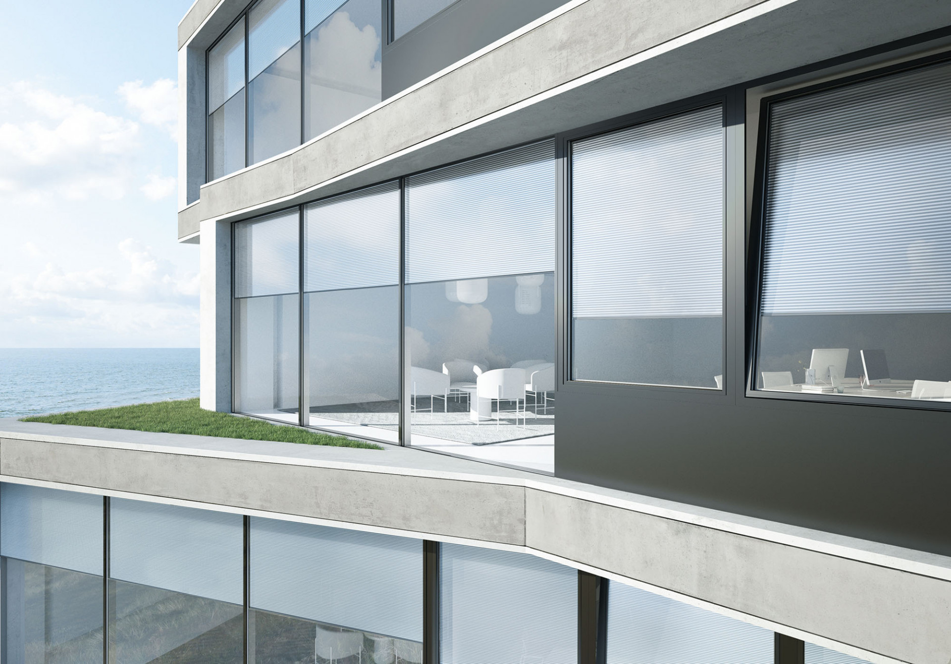 Vnitřní rolety Schüco Integralmaster brání oslnění i přehřívání interiéru