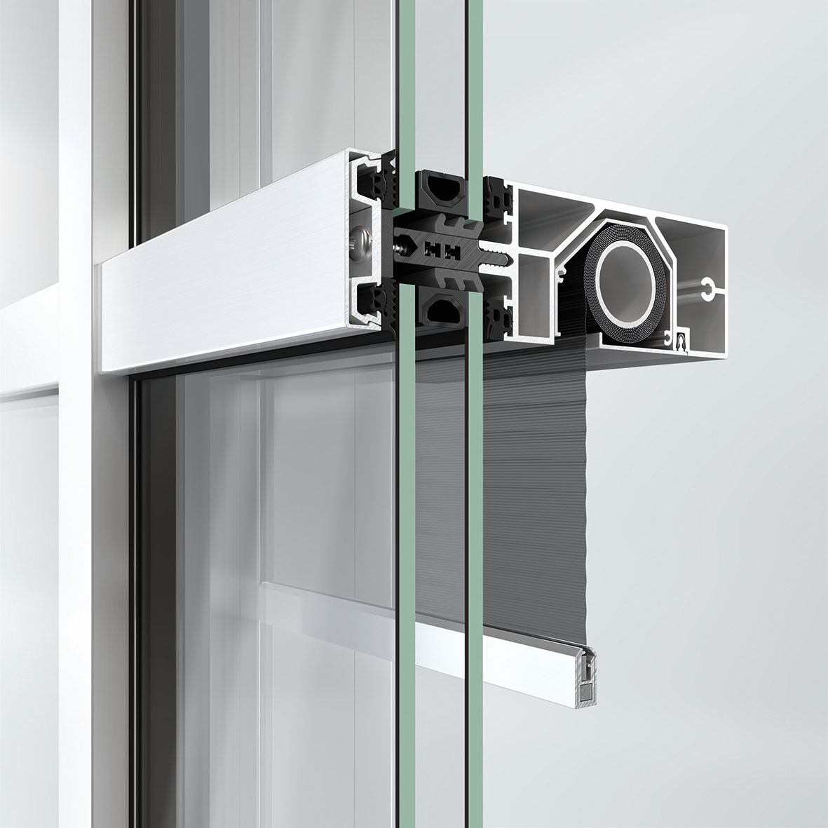 Schüco Integralmaster je systém vnitřních rolet, který lze dokonale integrovat do zasklívacích lišt hliníkových okenních systémů Schüco. Nové řešení stínicí a antireflexní ochrany oken umožňuje integraci do sloupko-příčkových fasád Schüco, přičemž roletový systém je skryt ve vodorovných příčkách. Výhodou integrovaného systému stínění je, že je viditelný pouze tehdy, když je požadována sluneční clona, ochrana před oslněním nebo stínění. Díky své speciální konstrukci spojuje výrobek Schüco Integralmaster ochranu proti oslnění, stínění a tepelnou izolaci do jednoho systému. Oslnění je možné snížit až o 97 procent a tepelnou energii ze sluníčka až o 85 procent. V závislosti na volbě materiálu je u rolet možný neomezený výhled směrem ven. U fasádních systémů je clona Schüco Integralmaster ovládána elektronicky pomocí 24V DC motoru SMI. Při integraci do okenních systémů Schüco je také možné mechanické ovládání pomocí řetízkového vytahovacího systému. Roletový systém je navržen jako jeden konstrukční celek. Ve spojení s jednoduchým řešením zapojení (plug-in) lze systém Integralmaster rychle nainstalovat do sloupko-příčkových fasád bez nutnosti dalších elektroinstalačních prací. Systém stínění Schüco Integralmaster je k dispozici pro fasádní systémy FWS 50 a FWS 60 a rovněž pro okenní systémy Schüco AWS 70, 75 a 90.