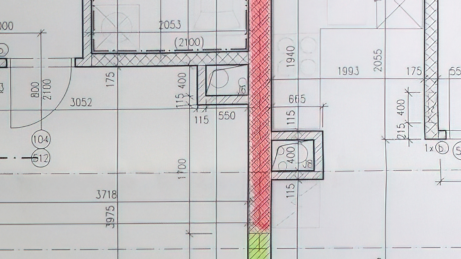 A nyní krátké zamyšlení nad „kouskem” projektové dokumentace. Jaký výsledek při měření stavební vzduchové neprůzvučnosti nakonec vyjde, ovlivní nejen realizační firma, ale do značné míry i to, jakým způsobem je stavba navržena. Nejde jen o podrobnost řešení detailů (např. způsoby napojení AKU stěn na okolní konstrukce), ale kolikrát se stačí při návrhu zamyslet, jak se bude stavba realizovat. Podívejme se na malý úsek zdiva o délce asi 3 m. Máme zde 4 druhy zdiva. Vždy se jedná o cihelné zdivo tl. 300 mm. V legendě hmot k této části dokumentace bylo dokonce 6 druhů cihelného zdiva o tl. 300 mm. Je to nutné? Projektanti, myslete, prosím vás, při navrhování občas i na ty, kteří budou stavbu realizovat. Objednat takové množství cihel a potom to i správně zabudovat…? To je skoro nadlidský úkol. Kolikrát je to i zbytečné a v konečném důsledku to může výrazně ovlivnit nejen finance, ale i výslednou hodnotu vzduchové neprůzvučnosti. V tomto případě krása spočívá v jednoduchosti. A neplatí to pouze o cihelném zdivu. Čím je projekt jednodušší (čisté dispoziční řešení, jasné a jednoduché konstrukční řešení, omezení různých druhůmateriálů), tím je i stavba jednodušší a v konečném důsledku i levnější.