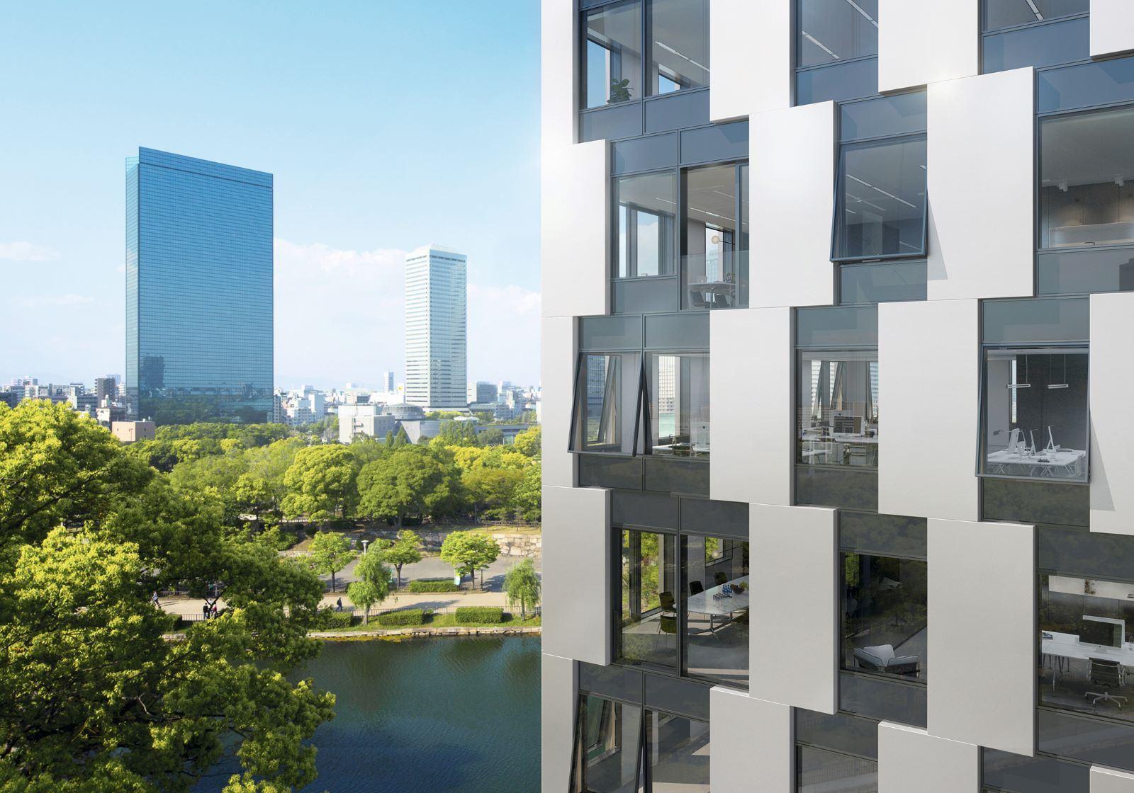 Elementy fasády Schüco UDC 80 lze horizontálně přesadit a vytvořit individuální design budov