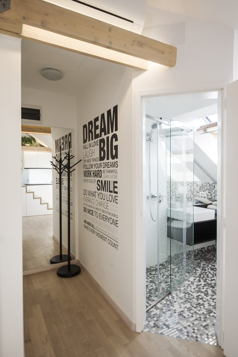 Podkrovní byt v měšťanském domě z poloviny minulého století v Lublani prošel rozsáhlou rekonstrukcí podle návrhu místního studia ASK 4. Malý dvoupodlažní byt studio proměnilo v pohodlné bydlení, k jehož kvalitě vnitřního prostředí mimo jiné přispívají nová střešní okna od firmy VELUX, která do interiéru přivádějí dostatek přirozeného světla, pocitově zvětšujícího jinak skromnou bytovou jednotku.