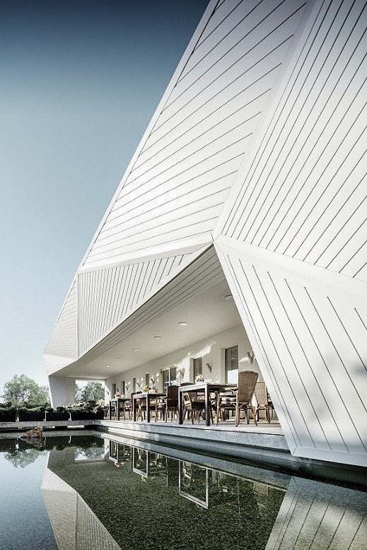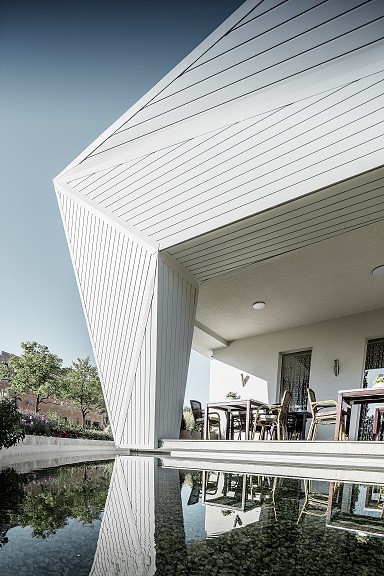 Když byla etapa vymýšlení a výkresů hotova, přišla na řadu mnohem složitější fáze. Zhmotnění plánů do reality. Pohled statika a rozhodnutí, že 24 metrová konzola je nemožná, Reznicska neodradilo. Naopak, utvrdila ho v myšlence stát si za svým rozhodnutím. A výsledek? Netradiční plošně prolamovaná fasáda obložená prvky PREFA Siding v bílé barvě.