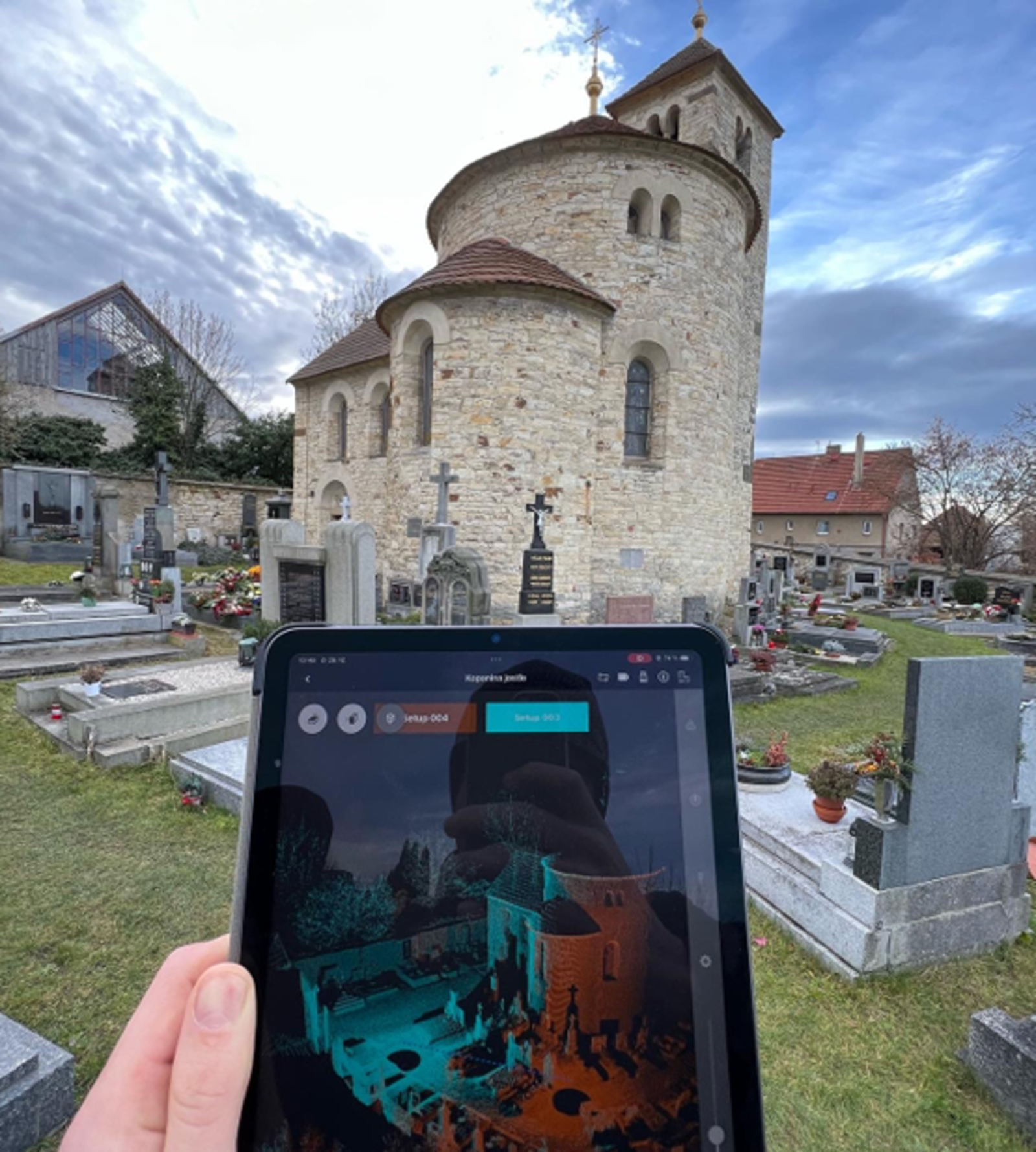 Jako ukázková data si můžete stáhnout mračna bodů v různých rozlišeních pořízených na hřbitově v Praze – Přední Kopanině, jemuž dominuje objekt románské rotundy svaté Maří Magdalény. Ukázková data si můžete stáhnout pod tímto odkazem.