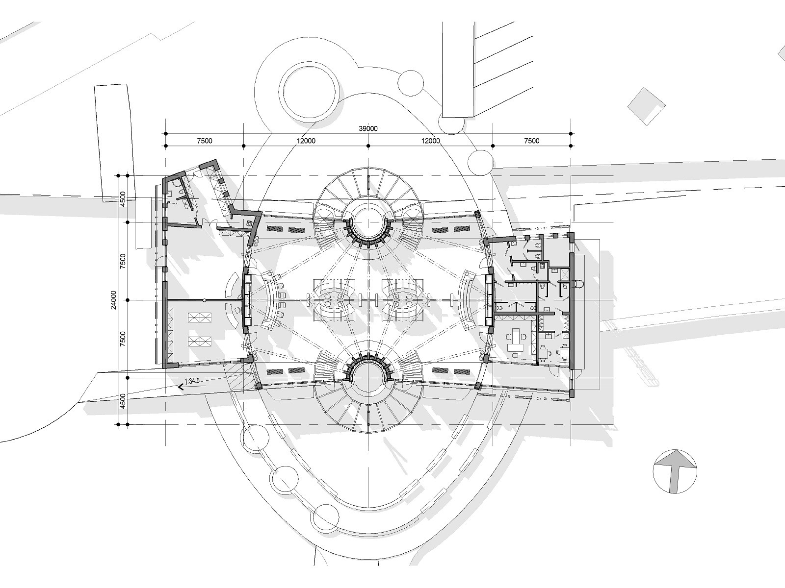 Hlavními stavebními materiály využitými při stavbě byly dřevo, sklo a hliník. Jejich vzájemná kombinace působí dynamicky a vzhledem k charakteru stavby i velice nadčasově. Je patrné, že se architekti zamýšleli nejenom nad vizuální stránkou stavby, ale také nad tím, že zde patrně bude alespoň stejně tak dlouho, jako ta původní, tedy minimálně 50 let. Při životnosti použitých materiálů a nadčasovosti stavby je to zcela nepochybné.