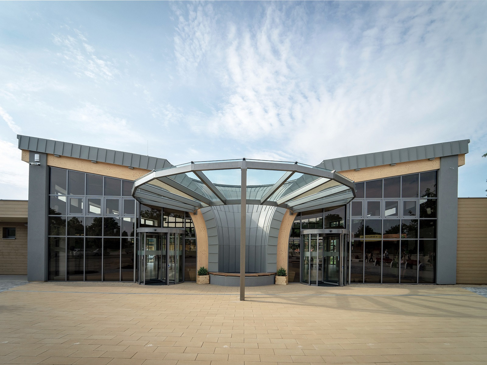 Vstupní bránu do slovenských lázní sjednocuje hliníková krytina PREFA