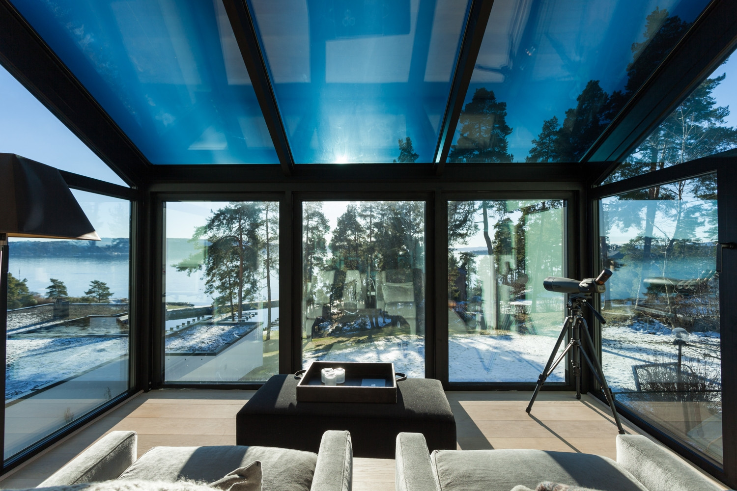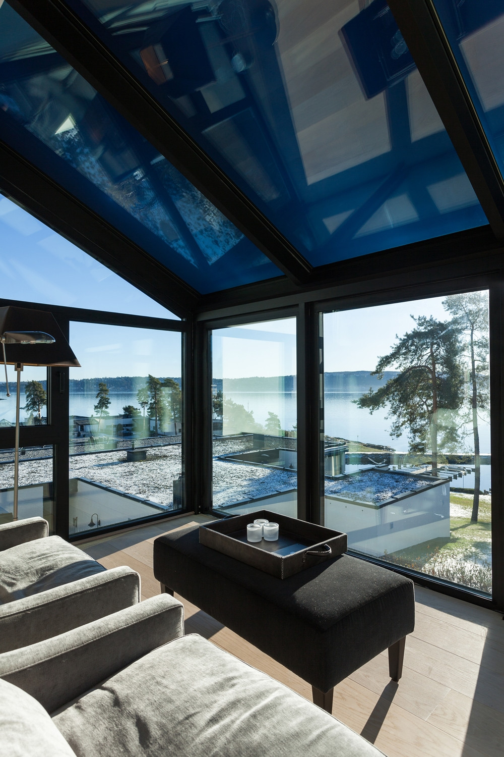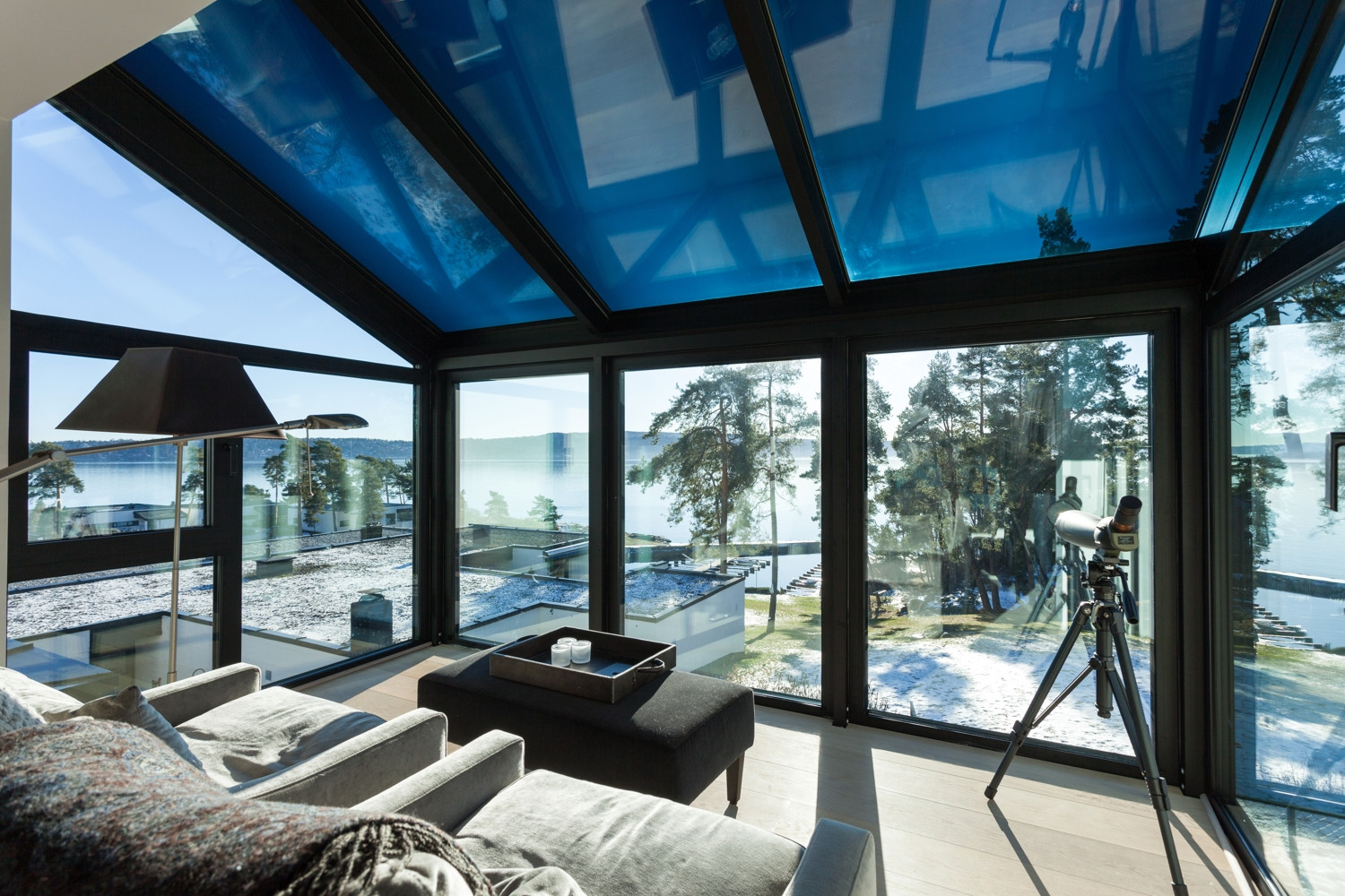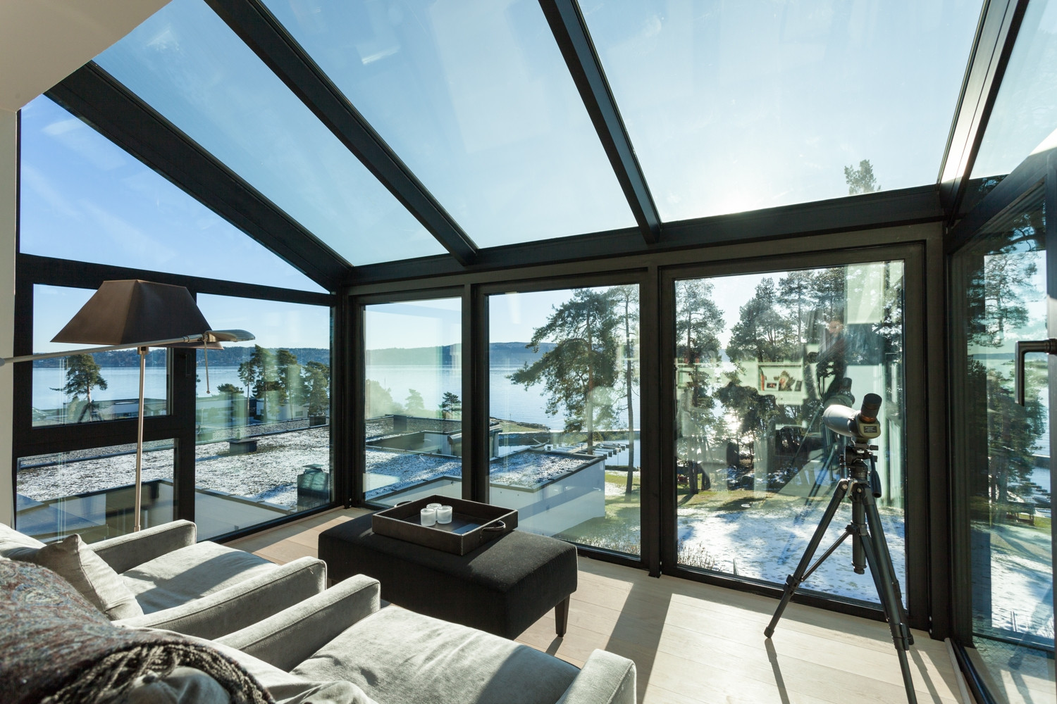 Rezidenční oblast Fürstlia na poloostrově Snarøya západně od Osla nabízí pro zimní zahradu ideální podmínky. Impozantní výhledy na zalesněné ostrůvky a říční břehy korunované západem slunce nad zátokou Oslofjord inspirují klienty k rozšíření jejich domovů o transparentní obývací prostor, který lze využívat po celý rok.