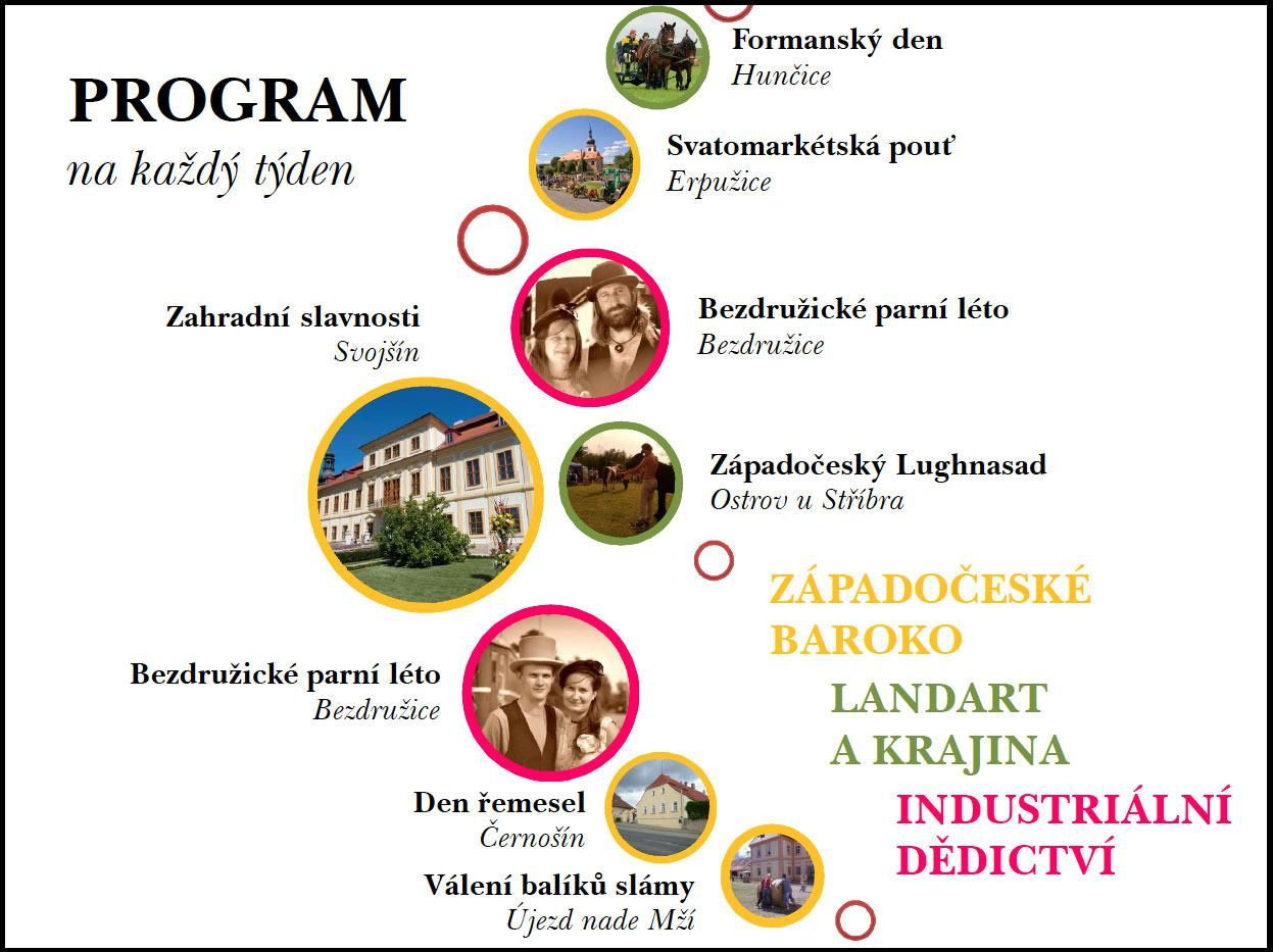V prostorách letohrádku začne v 10 hodin beseda Poustevníci a poustevny na Tachovsku. Ve stejný čas se také otevřou brány zahrad, do kterých návštěvníky přivítá smyčcové trio Naladěno. Na zámeckém dvoře bude připraven řemeslný jarmark, v parku pak hry a výtvarné dílny pro děti. Program zpestří dobová taneční vystoupení skupin En Garde, Dobrodinská Ballet a Mericia & Korbel.