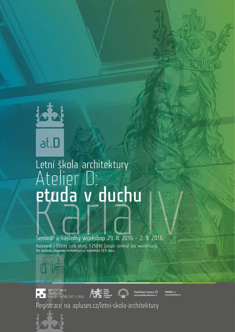 Katedra architektury ve spolupráci s Omnium z. s. letos poprvé pořádá letní školu architektury a stavění. Rok 2016 je rokem, který je spojen s oslavou 700 let od narození Karla IV., proto ani tato letní škola nenechá tento motiv stranou. Název „Ateliér D: letní architektonická etuda v duchu Karla IV.“ napovídá, že ústřední motiv “Vita Caroli” sváže dílčí části do tematického celku. Karel IV. byl především vizionář, průkopník moderních technologií a moderního pojetí světa, nadčasová osoba… a to je to, co bude z jeho odkazu v rámci akce využito.