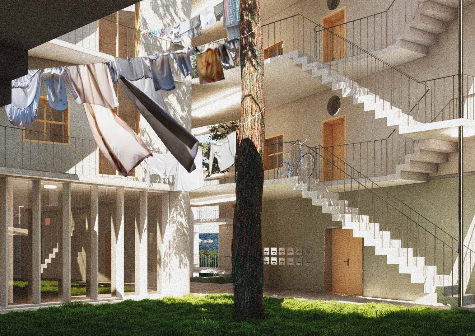 Projekt Transitus od Lady Zapletalové z ateliéru Lampa. Porota ve svém hodnocení zdůraznila obdivuhodný návrh velkého měřítka v kontextu sídlištní zástavby.