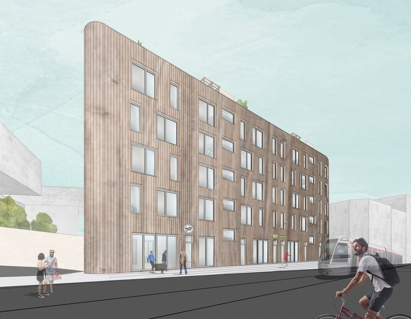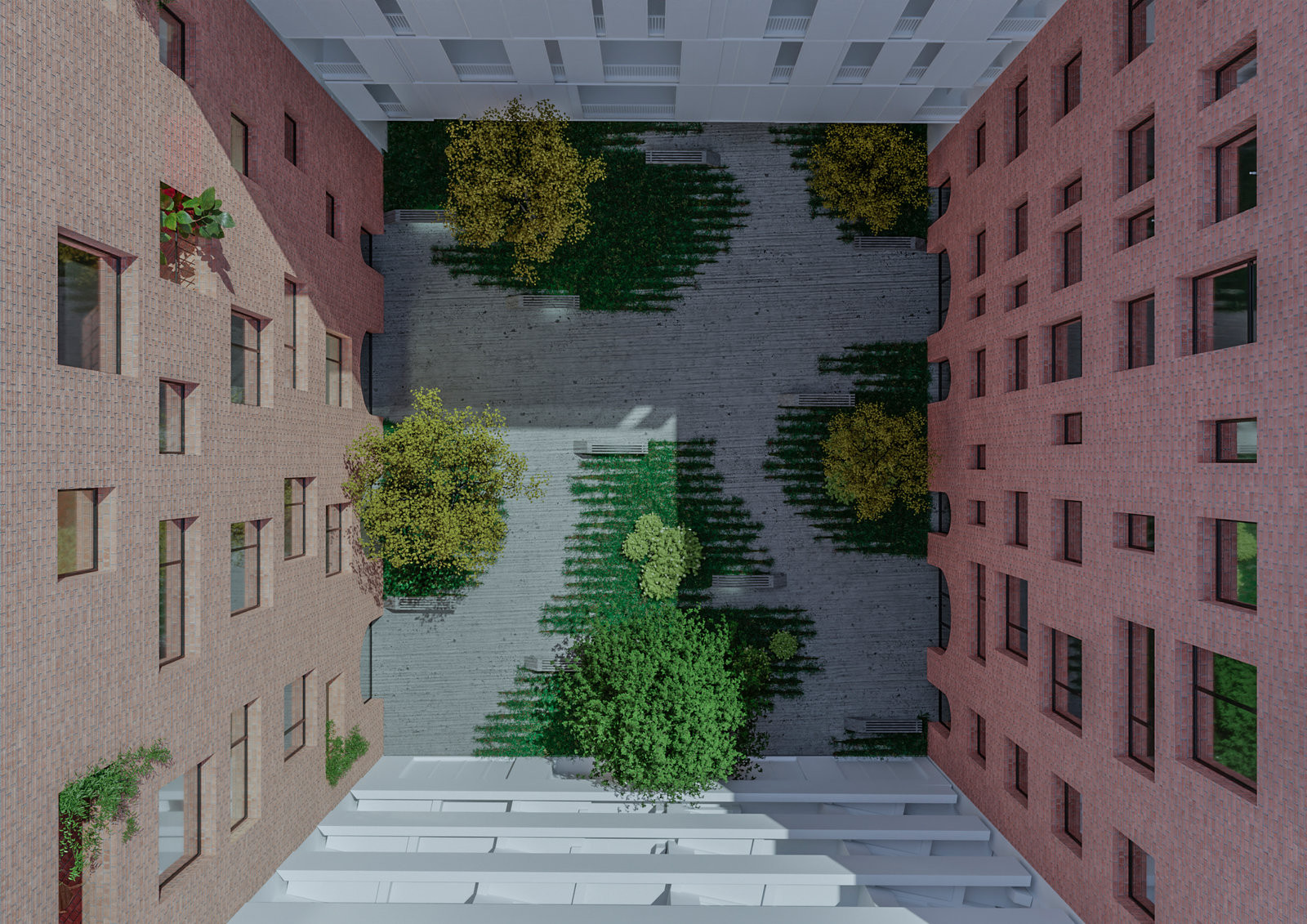 Bytové domy Kreuzberg od týmu Vojtěcha Janoše a Jana Johanidese z ateliéru Hlaváček-Čeněk. Porotu přesvědčila kompozice dvorní fasády a její výraz.
