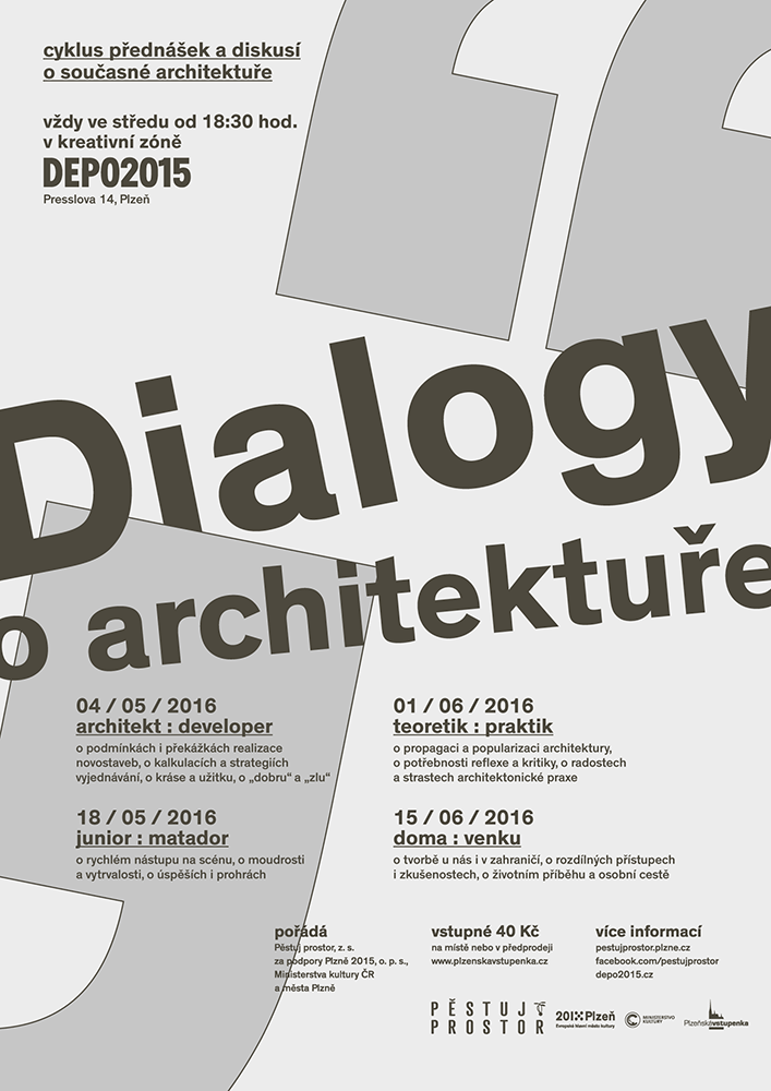 Další přednáška a diskuse z cyklu DIALOGY O ARCHITEKTUŘE s názvem teoretik : praktik se bude konat ve středu 1. června 2016 od 18:30 hod. v kavárně DEPO2015 v Plzni.