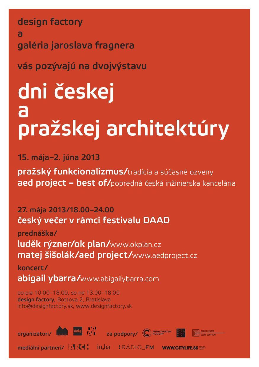 design factory a Galéria Jaroslava Fragnera už po piaty krát prinesie do Bratislavy českú architektúru. Tentokrát pôjde o dvojvýstavu, ktorá predstaví 38 ikonických projektov z obdobia pražského funkcionalizmu a to najlepšie z tvorby poprednej českej inžinierskej kancelárie AED project. Obe výstavy sprevádzajú knižné publikácie, ktoré sú dostupné na prezeranie či kúpu.