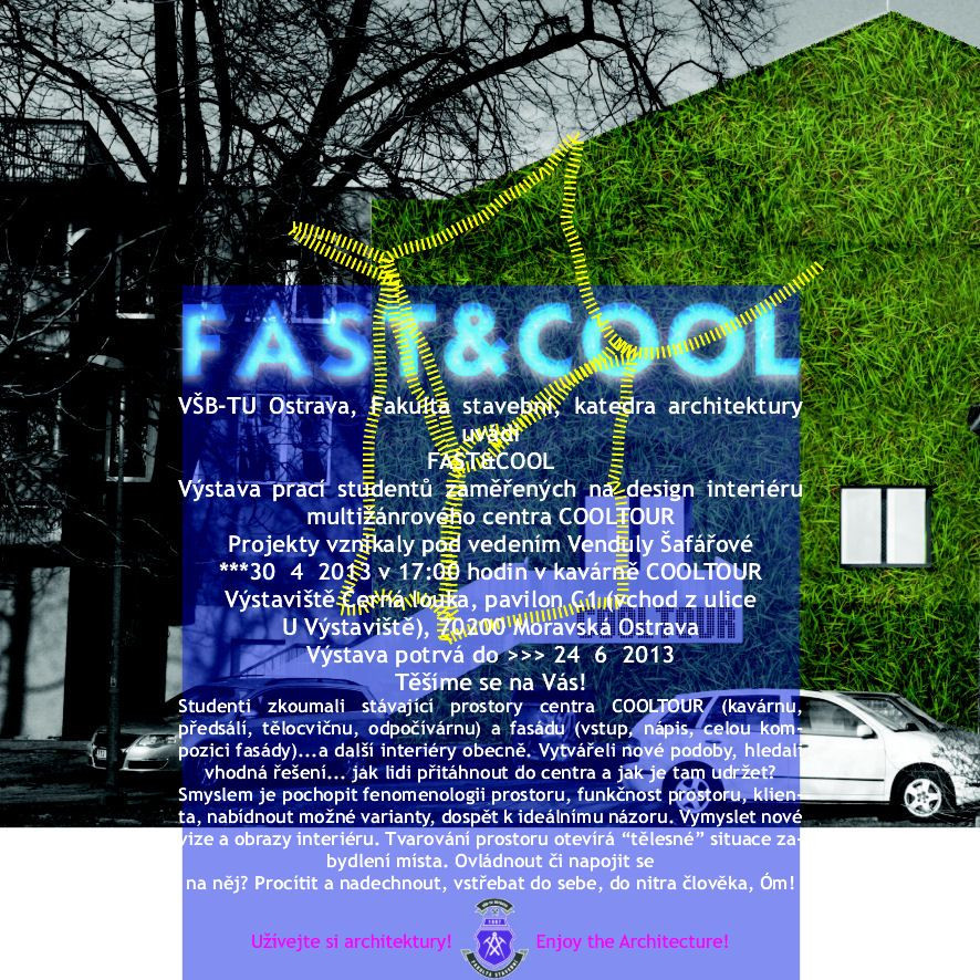 FAST & COOL je výstava prací studentů VŠB-TU Ostrava oboru Architektura a stavitelství zaměřených na design interiéru multižánrového centra COOLTOUR v Ostravě. Přijďte se podívat!