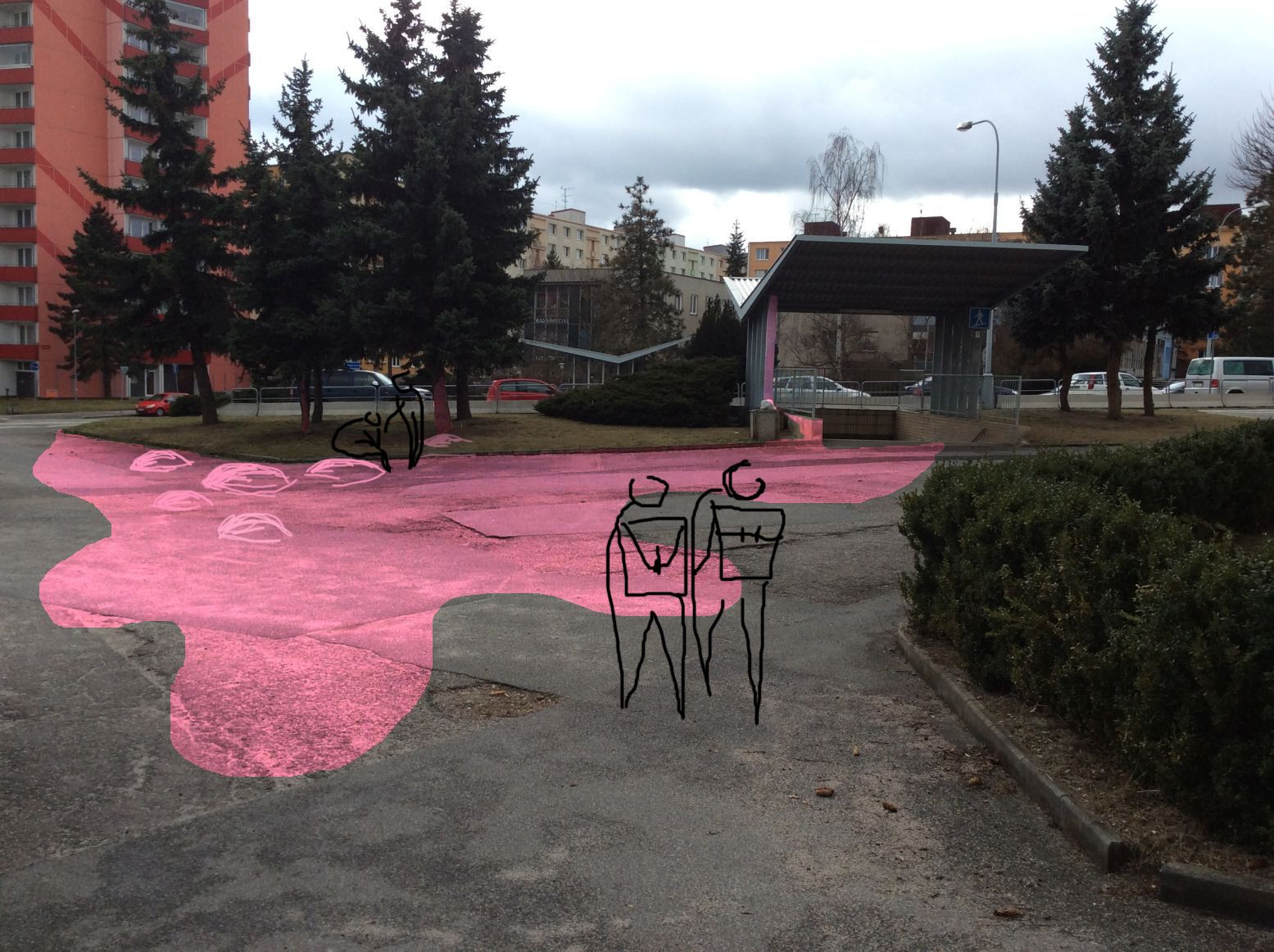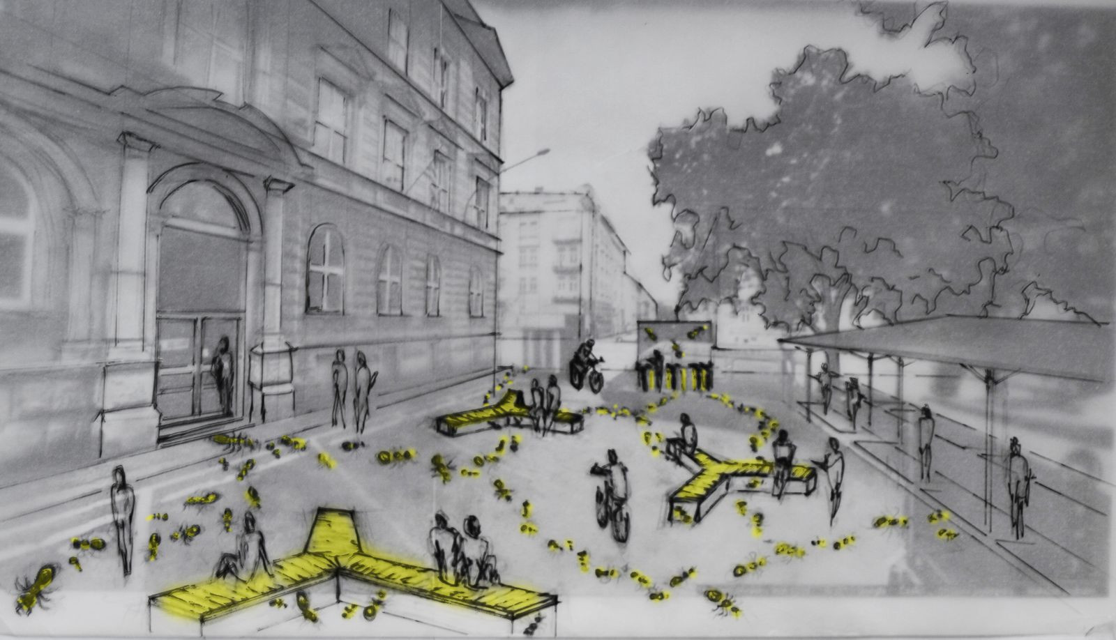 Chodské náměstí (autor podnětu: Roman Černík, autoři návrhu úprav: Zuzana Končelová, Lucie Pavlištíková)Chodské náměstí je známé svým tradičním trhem, kromě nakupujících je však také cílem studentů Střední průmyslové školy stavební a Pedagogické fakulty Západočeské univerzity, jež zde sídlí. Právě předprostor „pajdy“ dnes trpí řadou bariér a studenti ho mohou jen stěží využívat. Díky festivalu TUTO MĚSTO by se měl stát přátelštějším k pobývání – napomůže tomu umístění mobiliáře, hravá malba na chodníku a důslednější dodržování pravidel pro parkování v tomto prostoru.