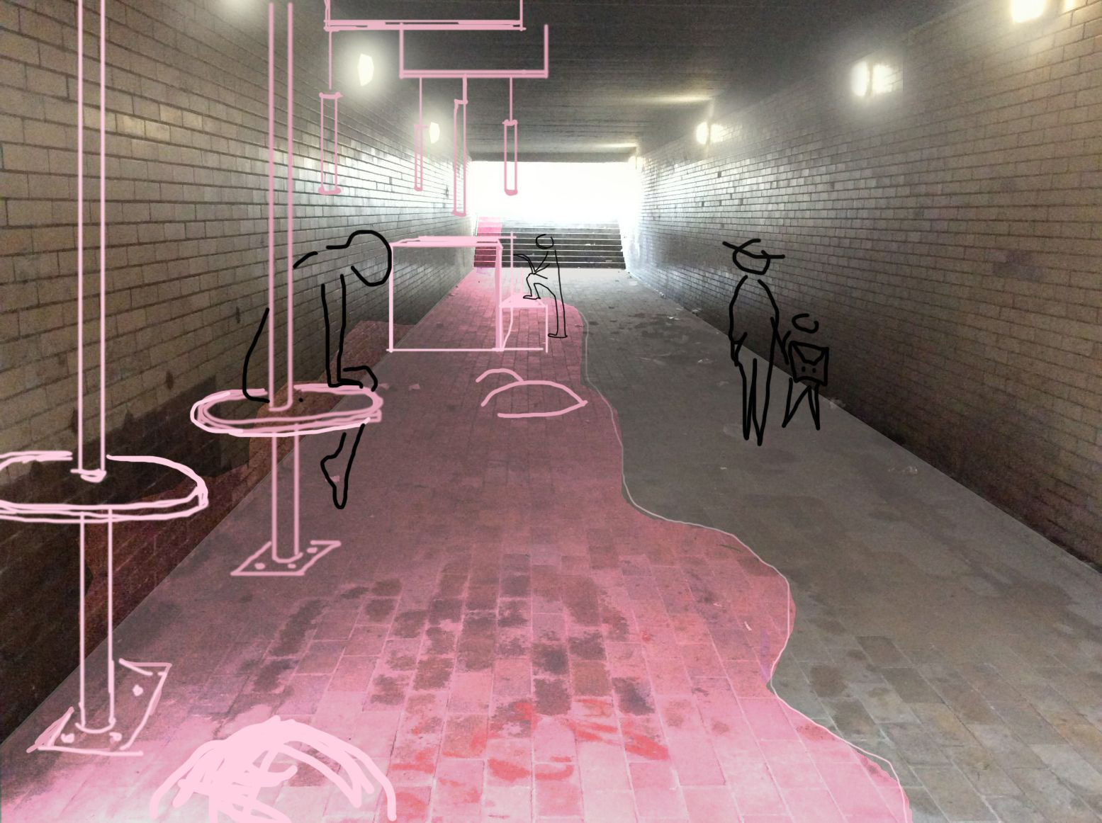 Pod plzeňskými mosty (autor podnětu: ENVIC, občanské sdružení, autoři návrhu úprav: Adéla Chmelová, Eliška Olšanská)Prostory pod mosty jsou často zanedbanými, nehostinnými místy, kterým se lidé snaží vyhnout či je alespoň projít co nejrychleji. S trochou snahy se však mohou stát příjemným zákoutím, kde se dá ukrýt před deštěm nebo nerušeně rozjímat. Netradiční umělecké instalace, které navrhli účastníci workshopu, vylepší průchod pod mostem Milénia na levém břehu řeky Radbuzy.