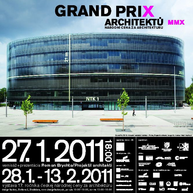 Design factory otvára rok 2011 českou architektonickou výstavou - Grand Prix architektů 2010 – Národní cena za architekturu, ktorá predstaví 17. ročník tejto najväčšej českej architektonickej súťaže. Uvidíte prehliadku súčasnej českej architektúry – všetkých 71 prihlásených diel v 7 kategóriách, medzi nimi aj laureáta Grand Prix 2010 – Národnú technickú knižnicu v Prahe z dielne známeho ateliéru Projektil architekti. Súčasťou vernisáže bude aj prezentácia architekta Romana Brychtu o tomto skvelom diele.