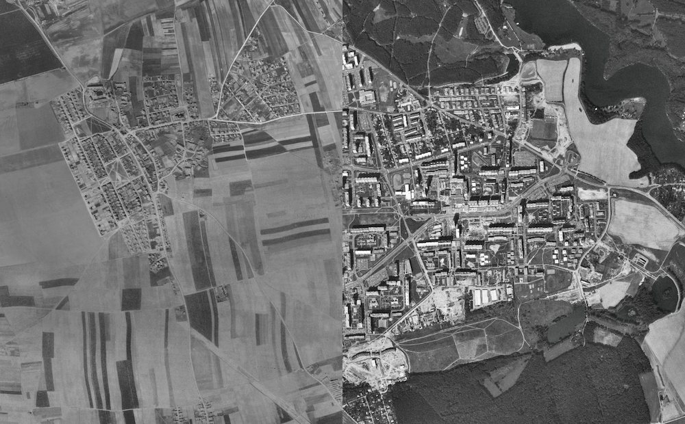 Rozvoj města znatelně demonstruje růst sídlišť v sedmdesátých letech 20. století. Prostřednictvím poválečných map se tak může návštěvník výstavy projít Jižním Městem ještě jako malebnou vesnicí nebo se podívat na nenápadně se probouzející území budoucího Jihozápadního města či sídliště Barrandov.