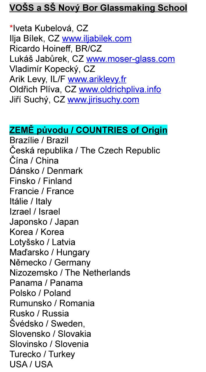 Mezi zúčastněnými umělci XII. Mezinárodního sklářského sympozia budou například legendy českého skla René Roubíček a Miluše Roubíčková, Vladimír Kopecký, Jiří Pelcl, Jaroslav Bejvl, Maxim Velčovský, David Černý, Liběna Rochová, Arik Levy, Juraj Jakubisko, Martin Janecký, studio Dechem, Jakub Petr a další. Ze zahraničních hostů jmenujme například Marii Roosen (NL), Paula Marioni (USA), Suna Liang (CN) a řada dalších z Německa, USA, Litvy, Finska, Maďarska, Dánska nebo Itálie.