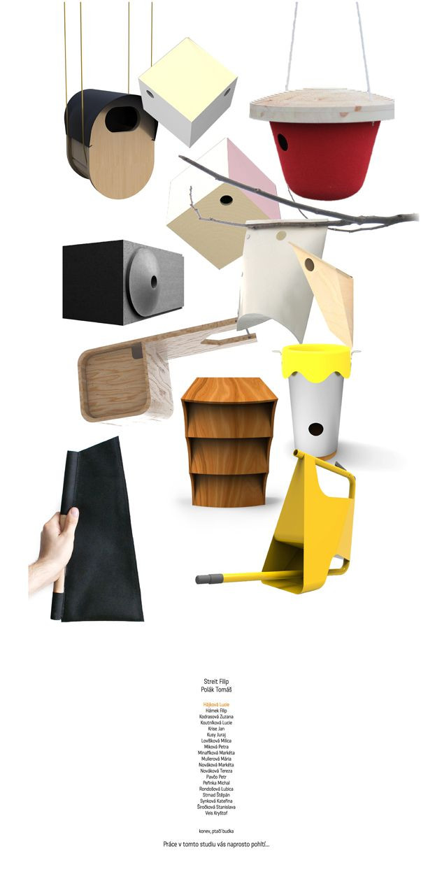 Lucie Hájková - Textilní konvička Flos - Ateliér Streit & Polák Veronika Melicharová - Caravan Casette toilet - Ateliér Tvarůžek & Fiala Markéta Rádková - Stolička - Ateliér Jaroš & Gonzalez Dávid Sivý - Stánek severské literatury na veletrh Kniha 2016 - Ateliér Karel Sabina Žáková - Série skla pro pivovar - Ateliér Fišer & Nezpěváková