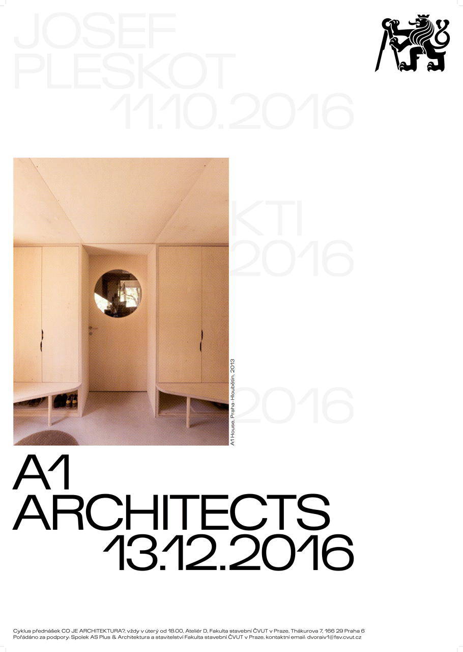 11. 10. Josef Pleskot (AP ATELIER) // FB událost 15. 11. Vít Šimek (H3T architekti) 29. 11. Jakub Cigler (Jakub Cigler Architekti) 13. 12. Lenka Křemenová (A1Architects)