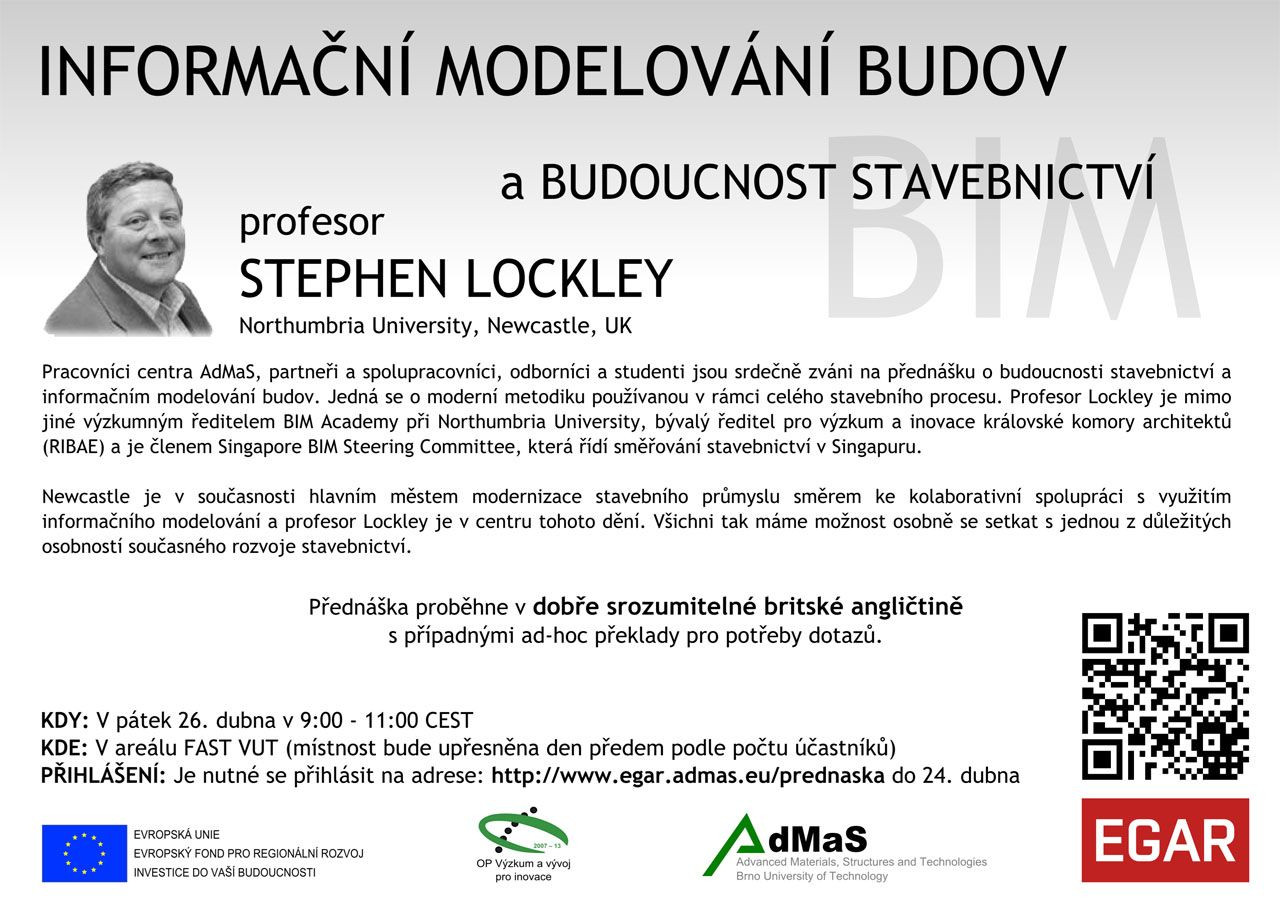 Nejen pro členy centra AdMaS, ale i partnery, příznivce a další zainteresované posluchače bude v pátek 26.4. uspořádána přednáška profesora Lockleyho o BIM (Building Information Modelling) a souvisejících tématech.