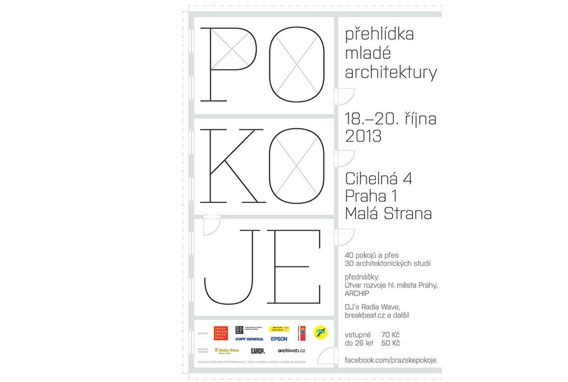 První edice přehlídky POKOJE se bude konat v unikátním prostředí v současnosti nepoužívaného domu v ulici Cihelná 4 na Malé Straně. V domě se nachází 46 pokojů, z nichž přes 30 bude věnováno architektuře. Studia se nebudou prezentovat pouze svými návrhy, ale budou se snažit zaujmout návštěvníky také specifickou úpravou svého pokoje. Vznikne tak rozmanitá a originální směsice stylů a nápadů.