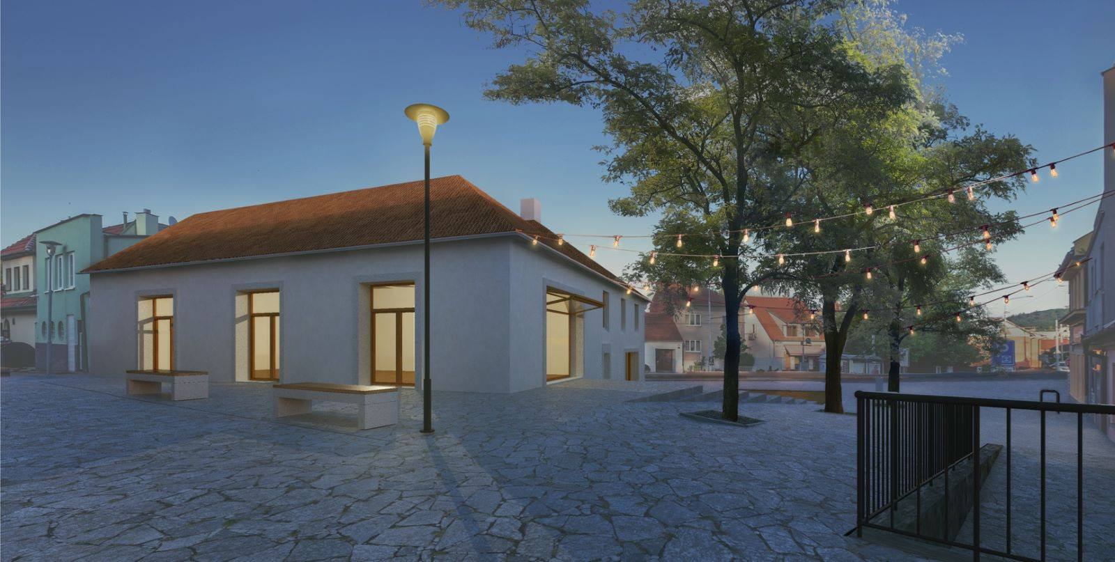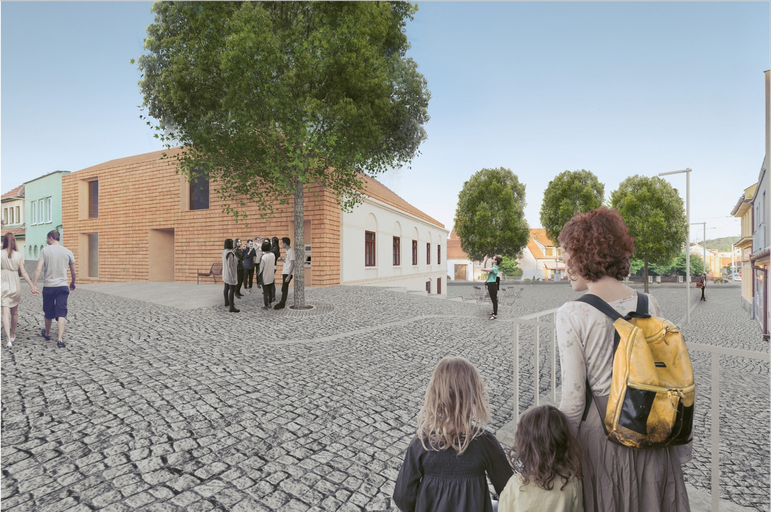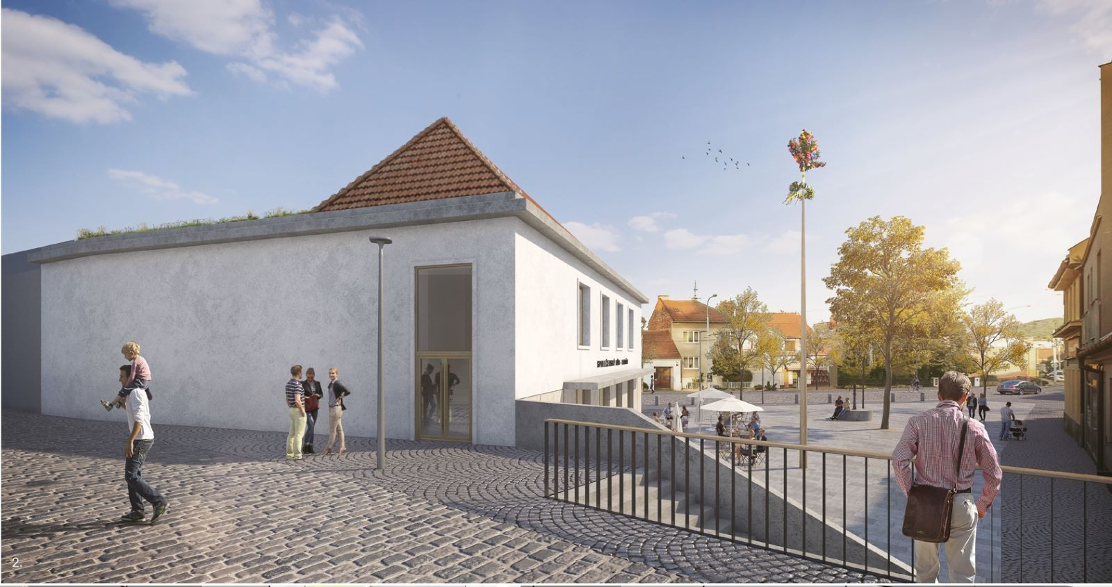 Náves, náměstí. Místo setkávání, konání kulturních akcí, středobod společenského života městské části. Místo s historií, často překotným stavebním vývojem. Starý dům již nedokáže pokrýt dnešní potřeby, nároky stavebního programu. Dožívající konstrukce, absence návaznosti podlaží na prostor náměstí, nevhodný konstrukční systém, to vše vedlo k myšlence novostavby. Čas jde stále kupředu, popisujeme nový list, přijde další a další. Nová budova bude sloužit občanům, návštěvníkům, plní současné požadavky. Historie je vepsána ve formě, v paměti, nesmazatelná.