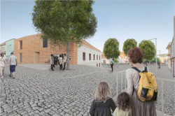 Abychom zodpovědně přistoupili k jisté svobodě, která plyne z rozhodnutí postavit nový dům, musíme naplno využít topografický a morfologický potenciál místa. V kontrastu k původnímu řešení proto navrhujeme otevřený dům, který má po celém obvodu velká okna až na zem a stává se tak součástí veřejného prostoru náměstí. Výsledkem je bezbariérová a přátelská budova v souladu se soudobými ideály.