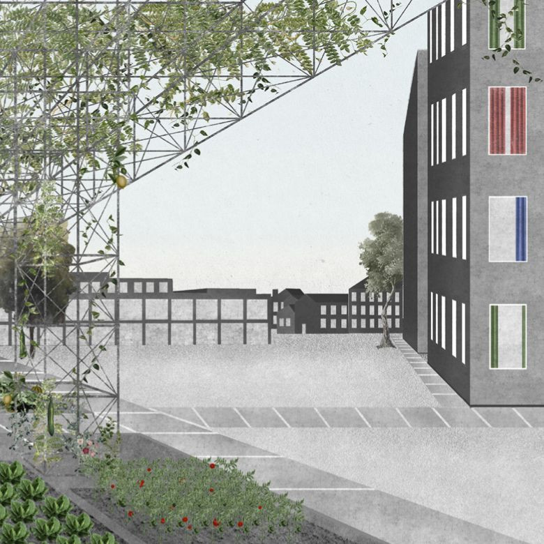 Alicia Bruder a Laura Hildbrand se v rámci řešení pro parkovací dům u Státní opery nechali inspirovat citací zakladatelů architektonického studia Lacaton & Vasal „Nikdy nebourejte, nikdy nepřesouvejte ani nenahrazujte, vždy doplňujte, proměňujte a opět využívejte“, která se stala motem pro návrh výstavního sálu, který využívá strukturu existujícího parkovacího domu a tak doplňuje sekvenci kulturních staveb. Jejich dostavba se stává obalem existující generické architektury.